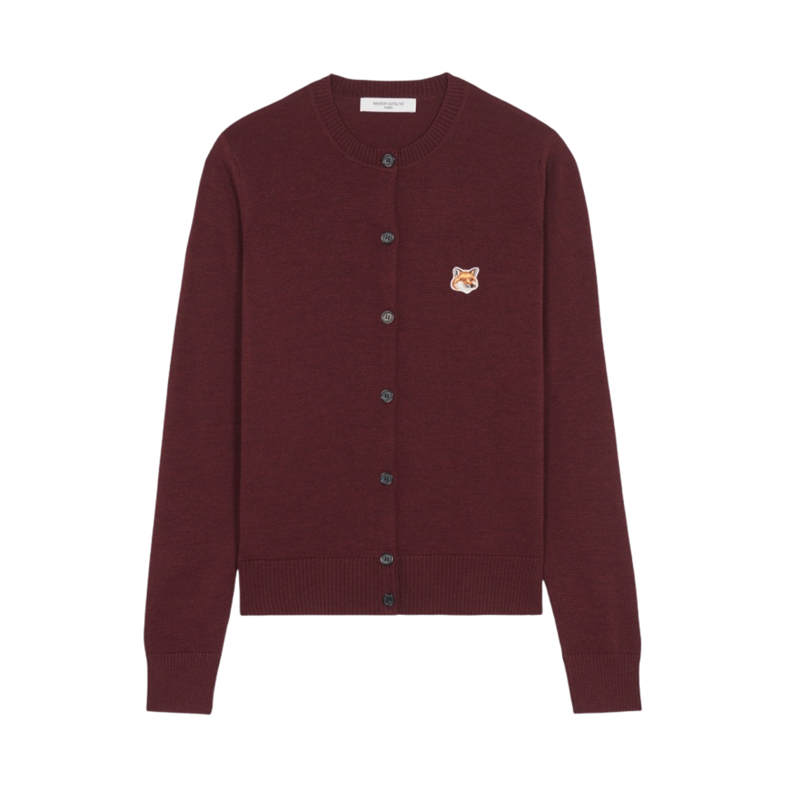 (W) Maison Kitsune Fox Head Patch Adjusted R-Neck Cardigan Wine Lees - 22FW