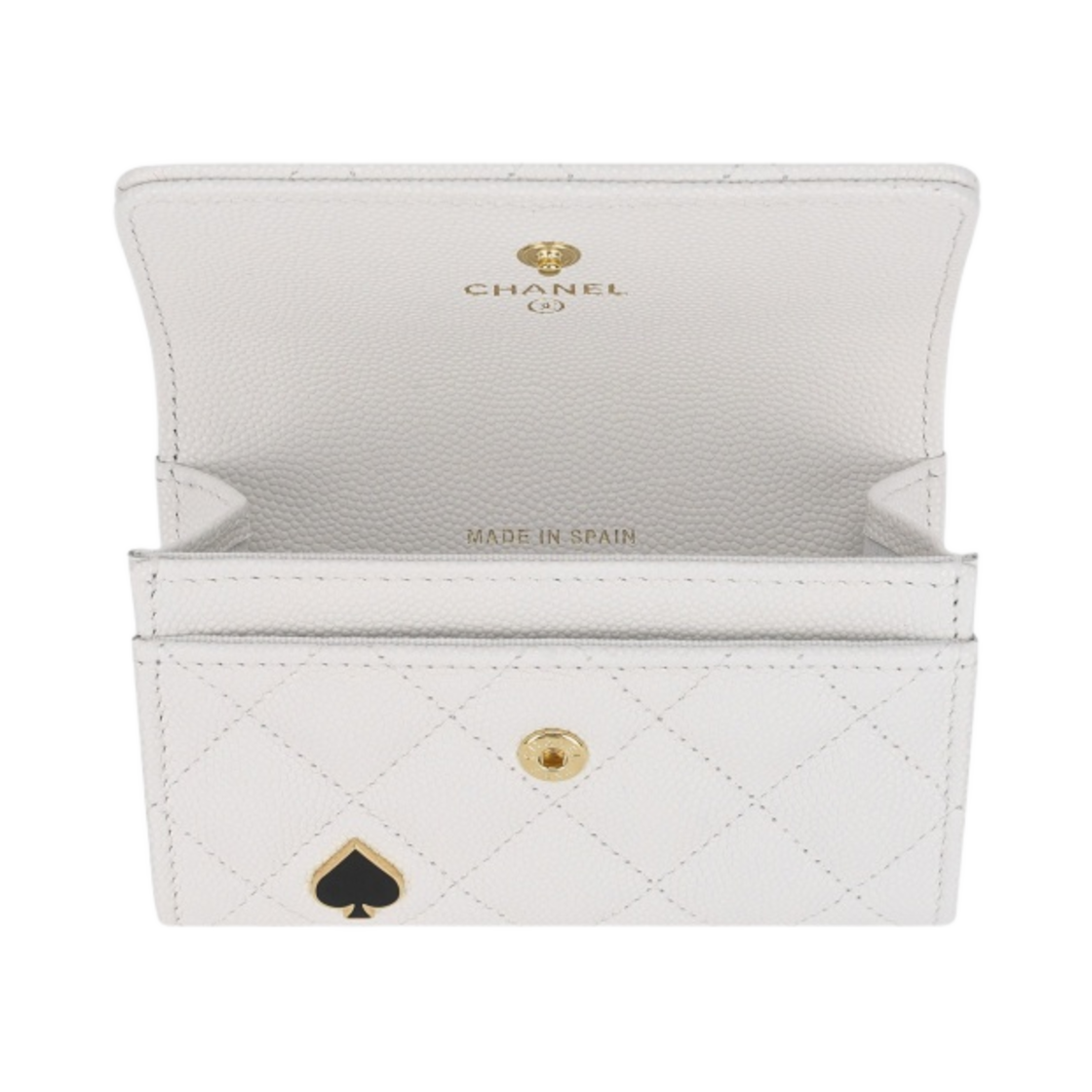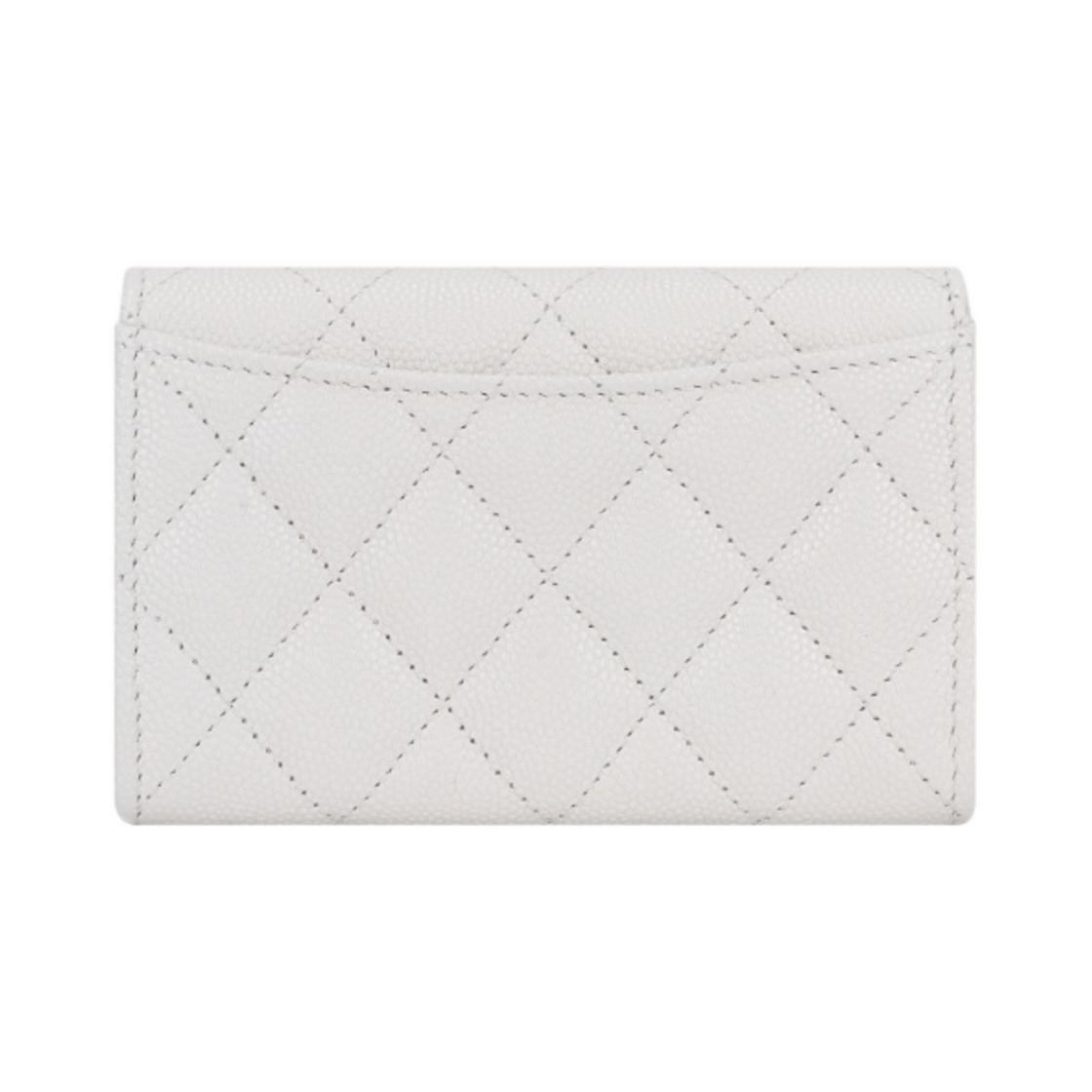 샤넬 플랩 카드 홀더 그레인드 카프스킨 에나멜 & 골드 메탈 화이트