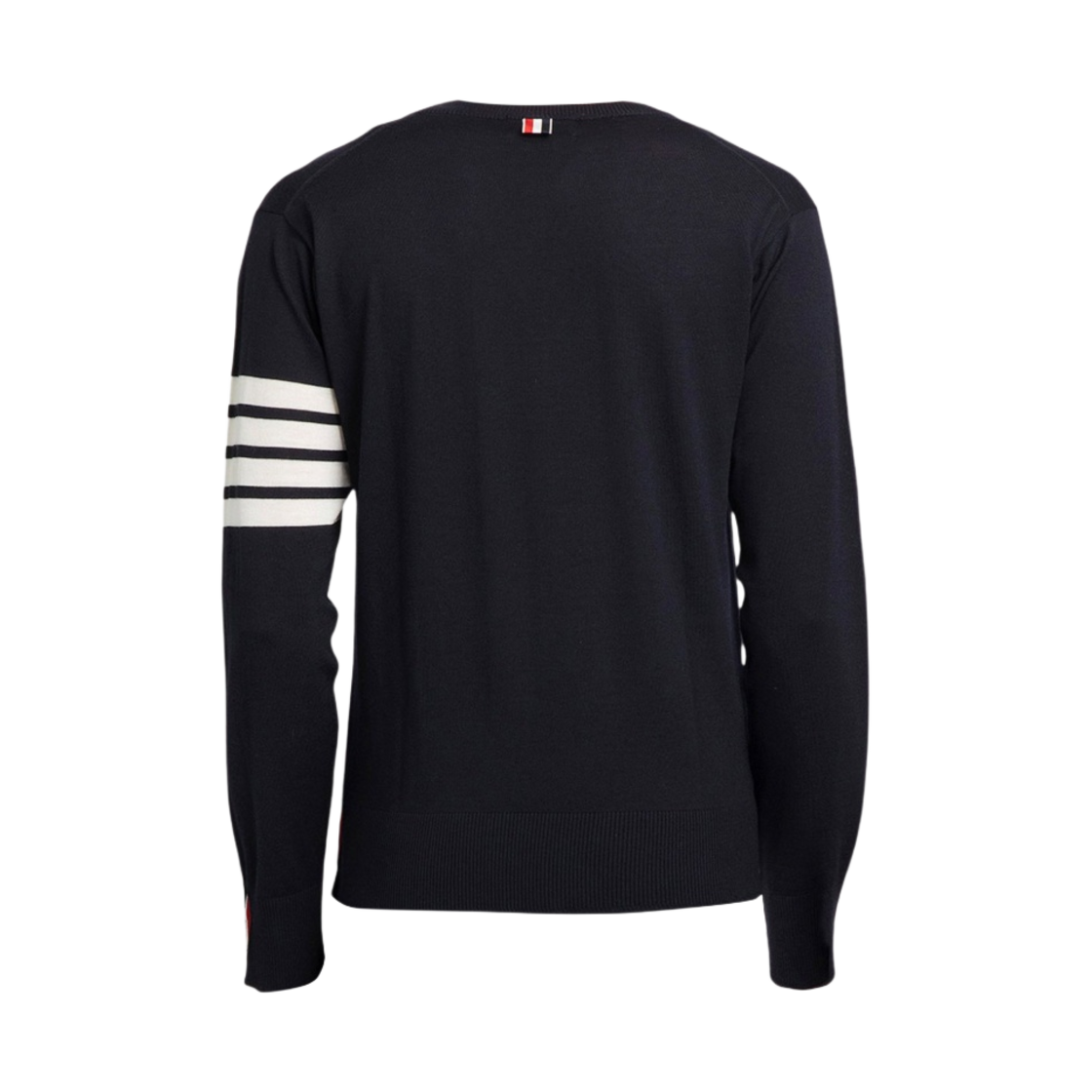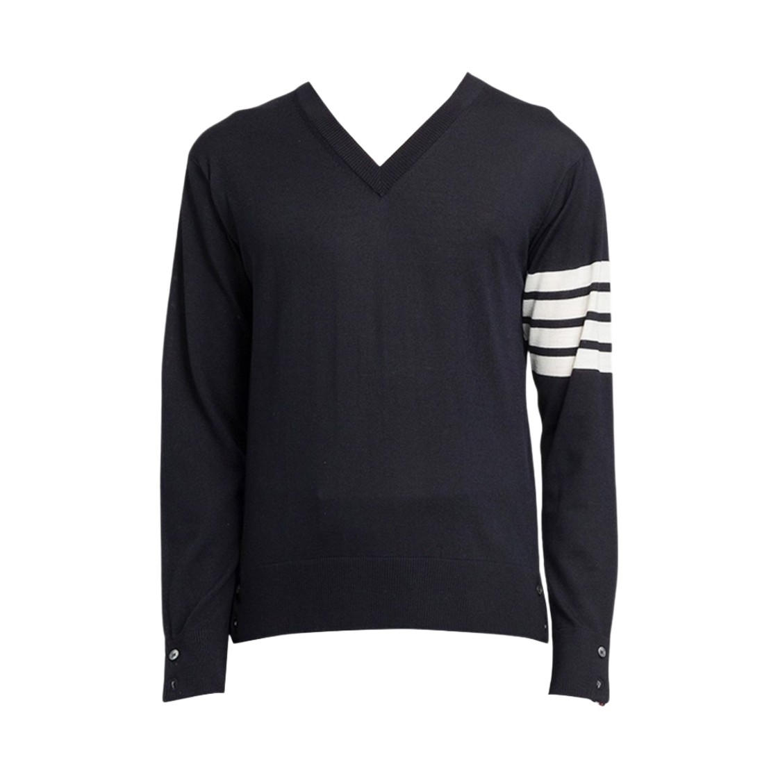 톰브라운 파인 메리노 울 사선 슬리브 클래식 브이넥 풀오버 네이비