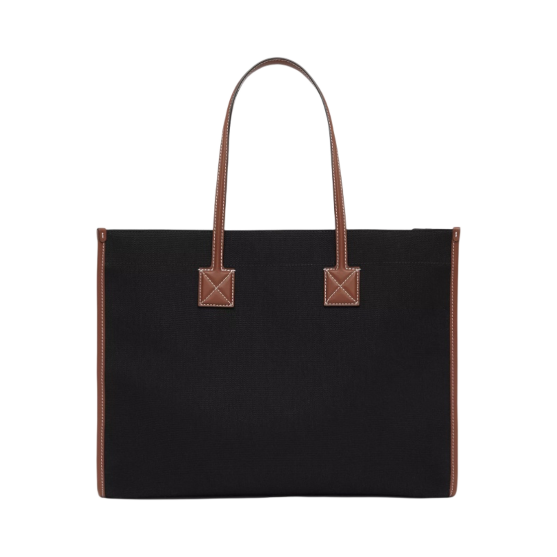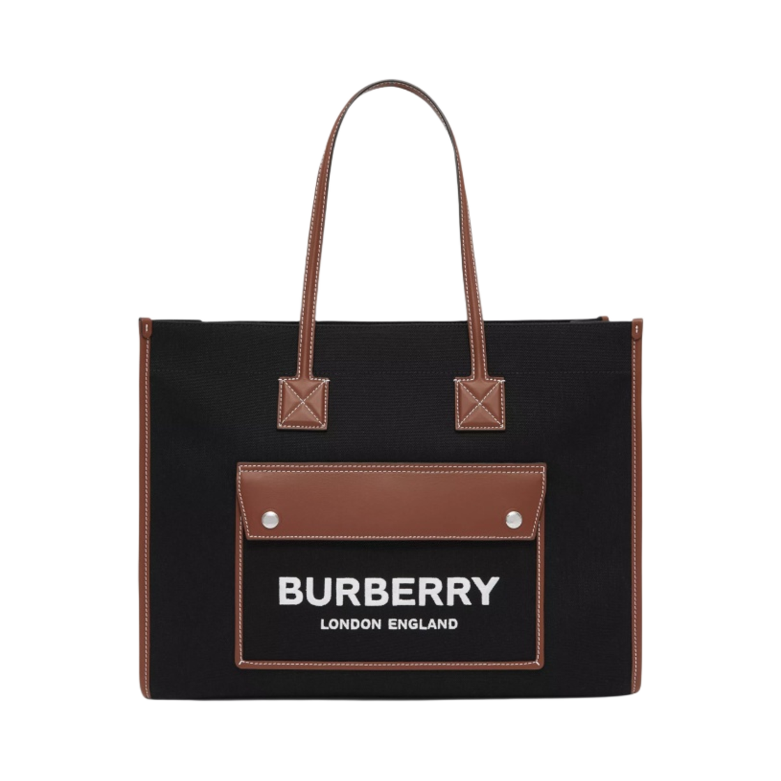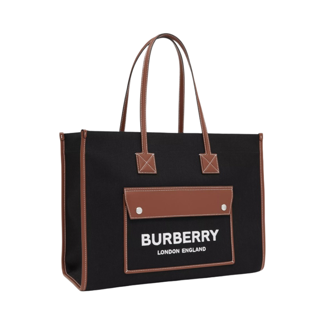 Burberry Medium Two-Tone Canvas and Leather Freya Tote Bag Black Tan