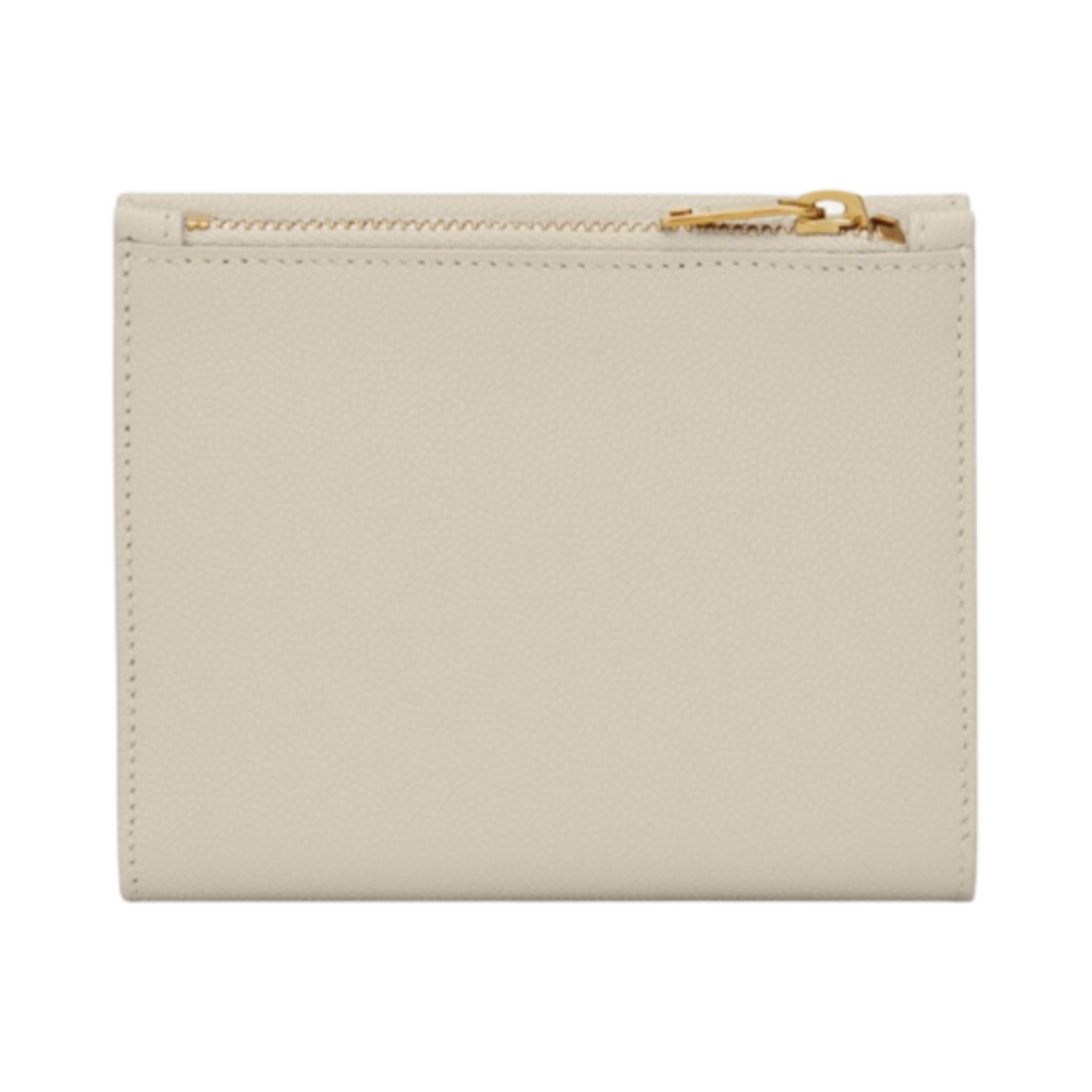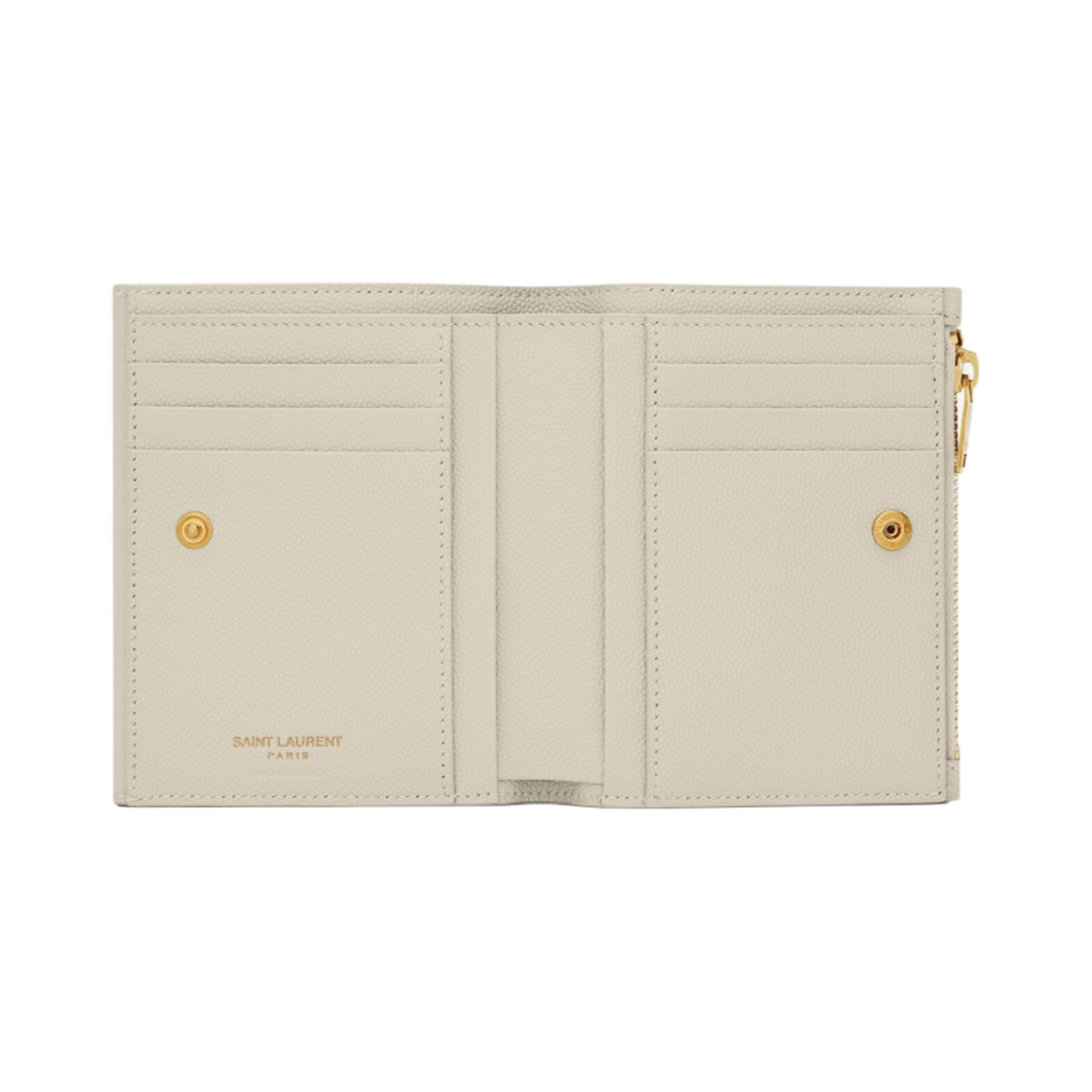 Saint Laurent Uptown Compact Wallet in Grain de Poudre Embossed Leather Blanc Vintage
