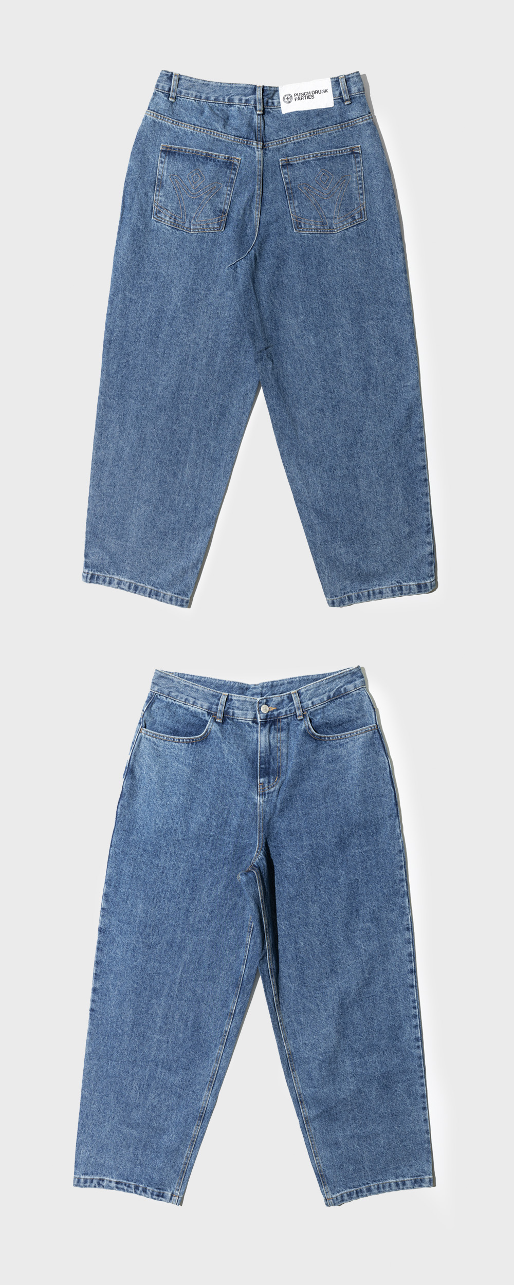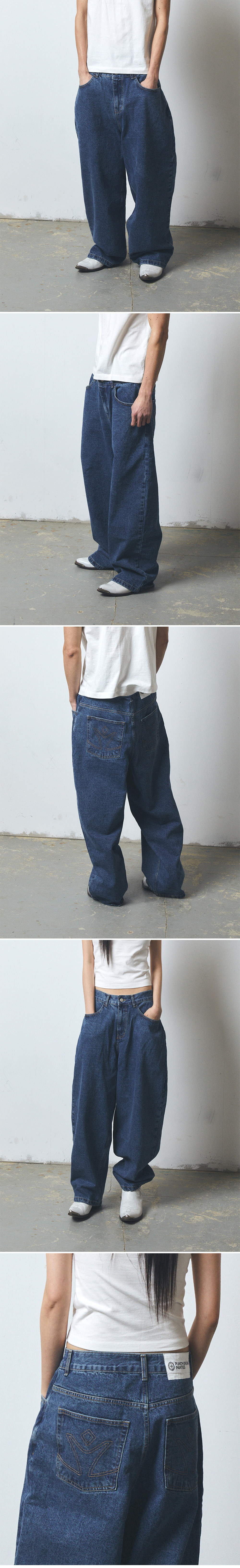- 100% Cotton - Oversized Silhouette - Signature Stitch (Back Pocket) - Parties Essentail Label Size Guide Male / 183cm, 61kg, Size 3 Female / 174cm, 54kg, Size 1 *실측 사이즈는 재는 방법에 따라 2~5cm 정도의 오차가 발생 할 수 있으며, 교환 반품 사유에 해당하지 않습니다.