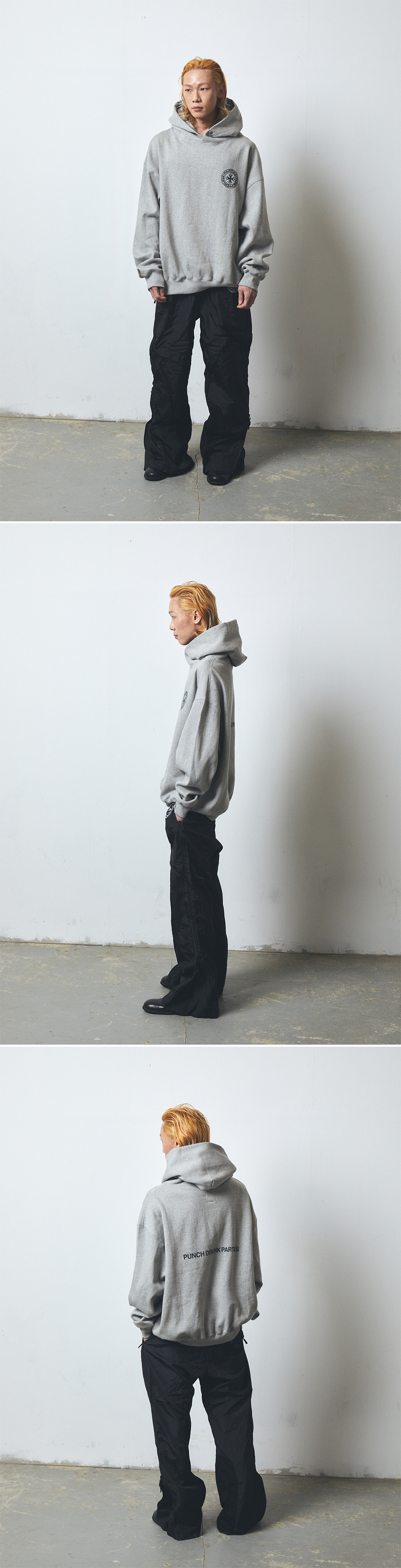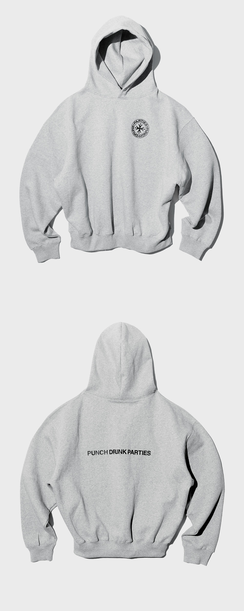 펀치 드렁크 파티즈 서클 로고 오버사이즈 후드 그레이
