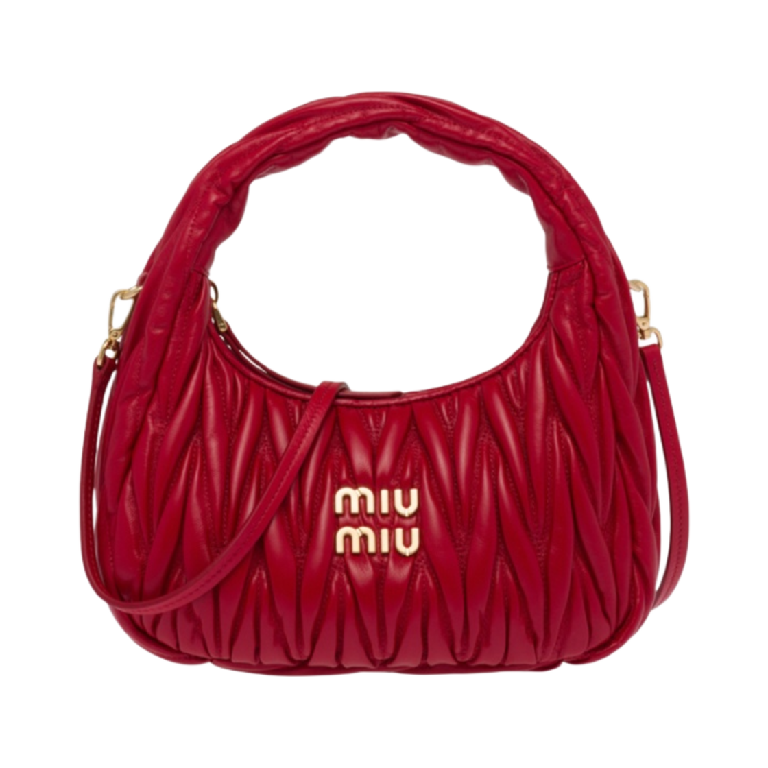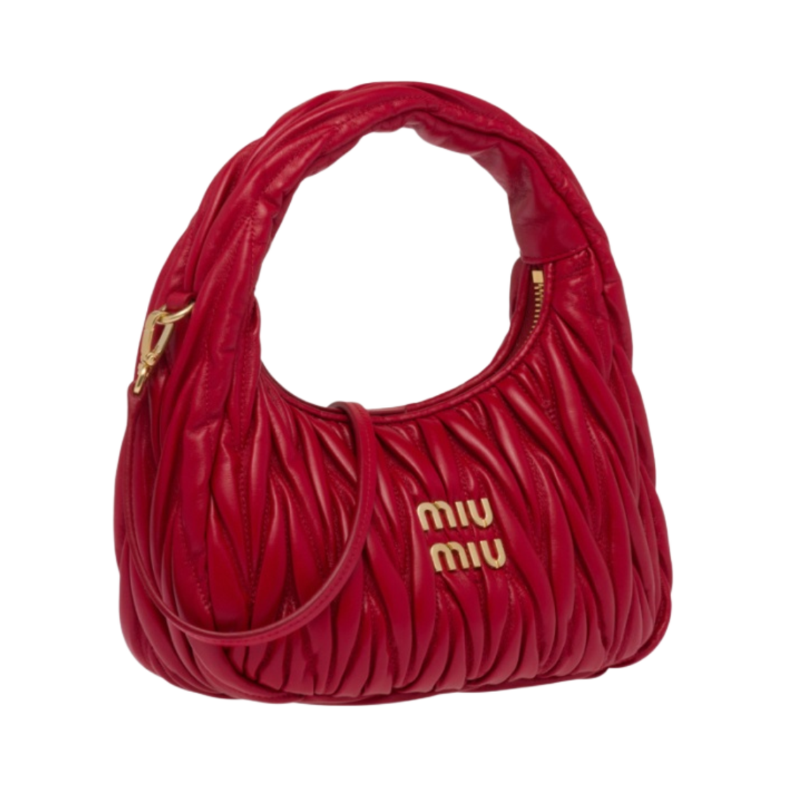 Miu Miu Wander Matelasse Nappa Leather Mini Hobo Bag Red