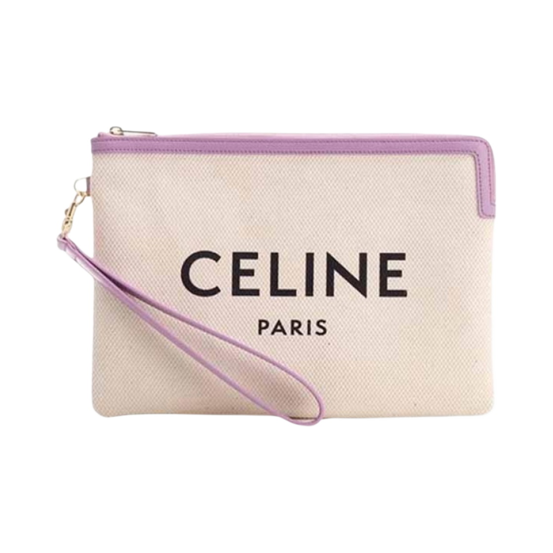 셀린느 텍스타일 셀린느 프린트 & 카프스킨 스트랩 스몰 파우치 모브