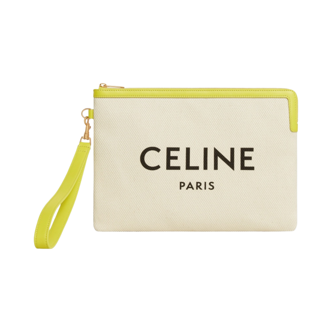 셀린느 텍스타일 셀린느 프린트 & 카프스킨 스트랩 스몰 파우치 아니스