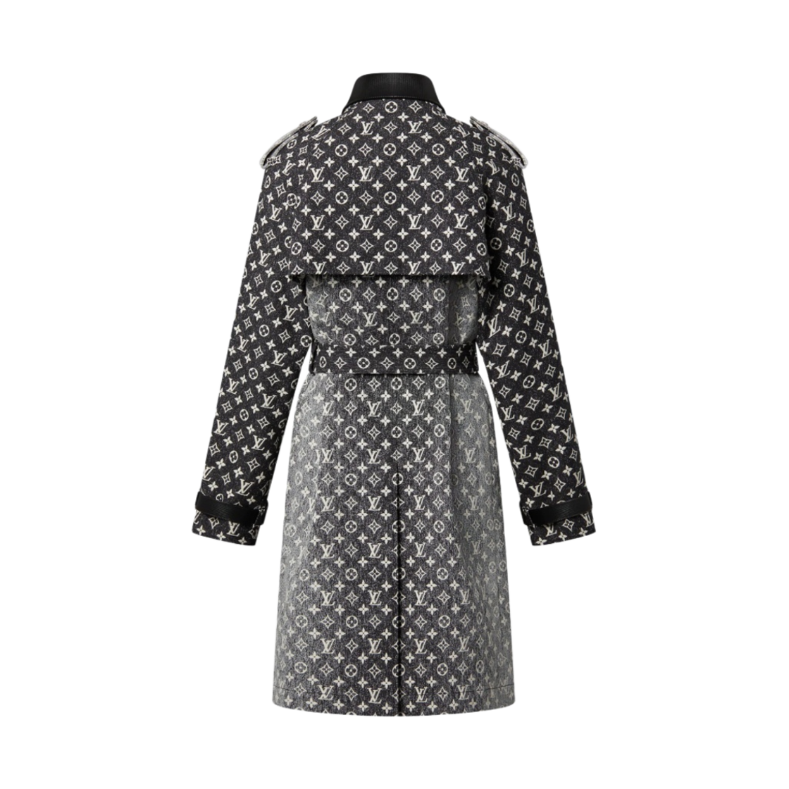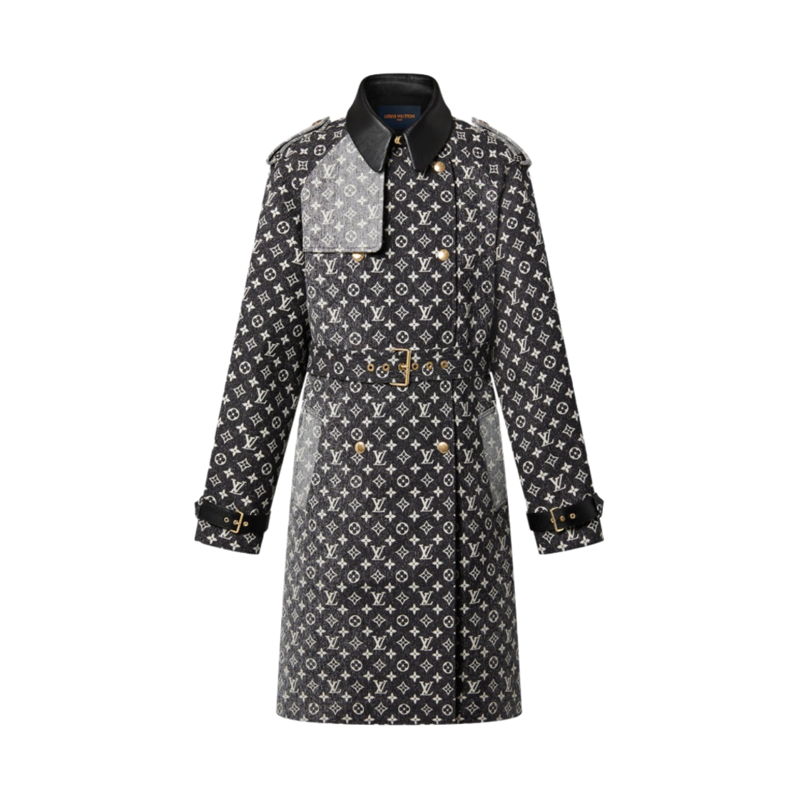 (W) Louis Vuitton Monogram Denim Trench Coat Grey