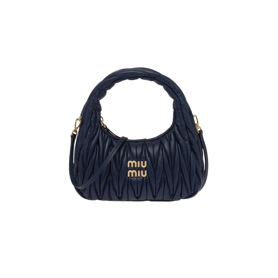 Miu Miu Wander Matelasse Nappa Leather Mini Hobo Bag Baltic Blue