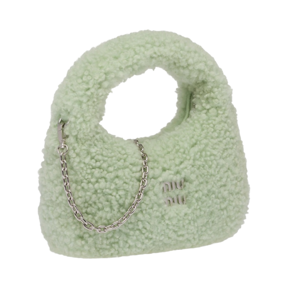 Miu Miu Wander Shearling Mini Hobo Bag Aqua