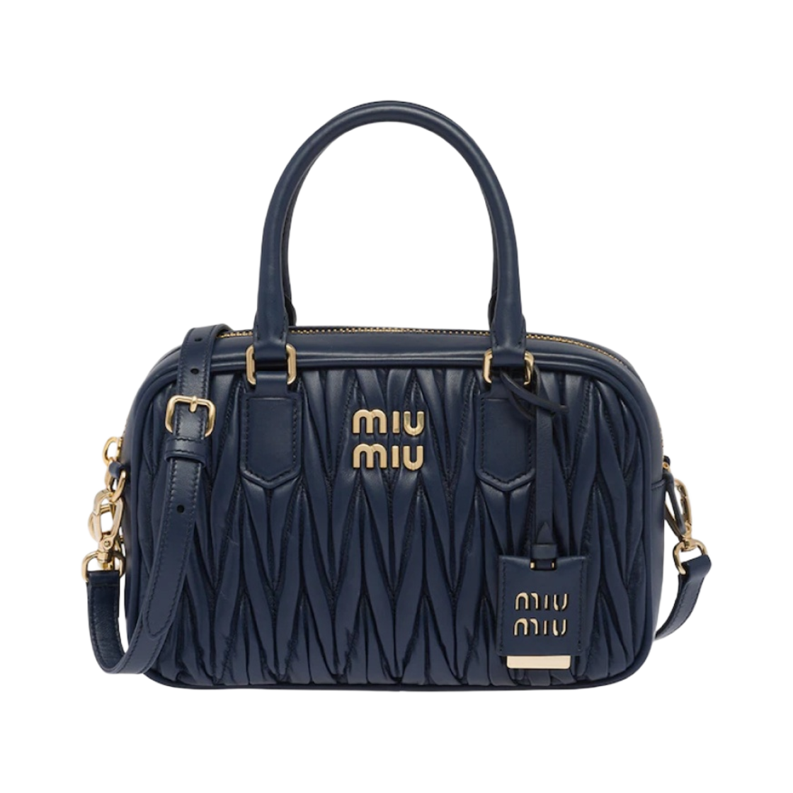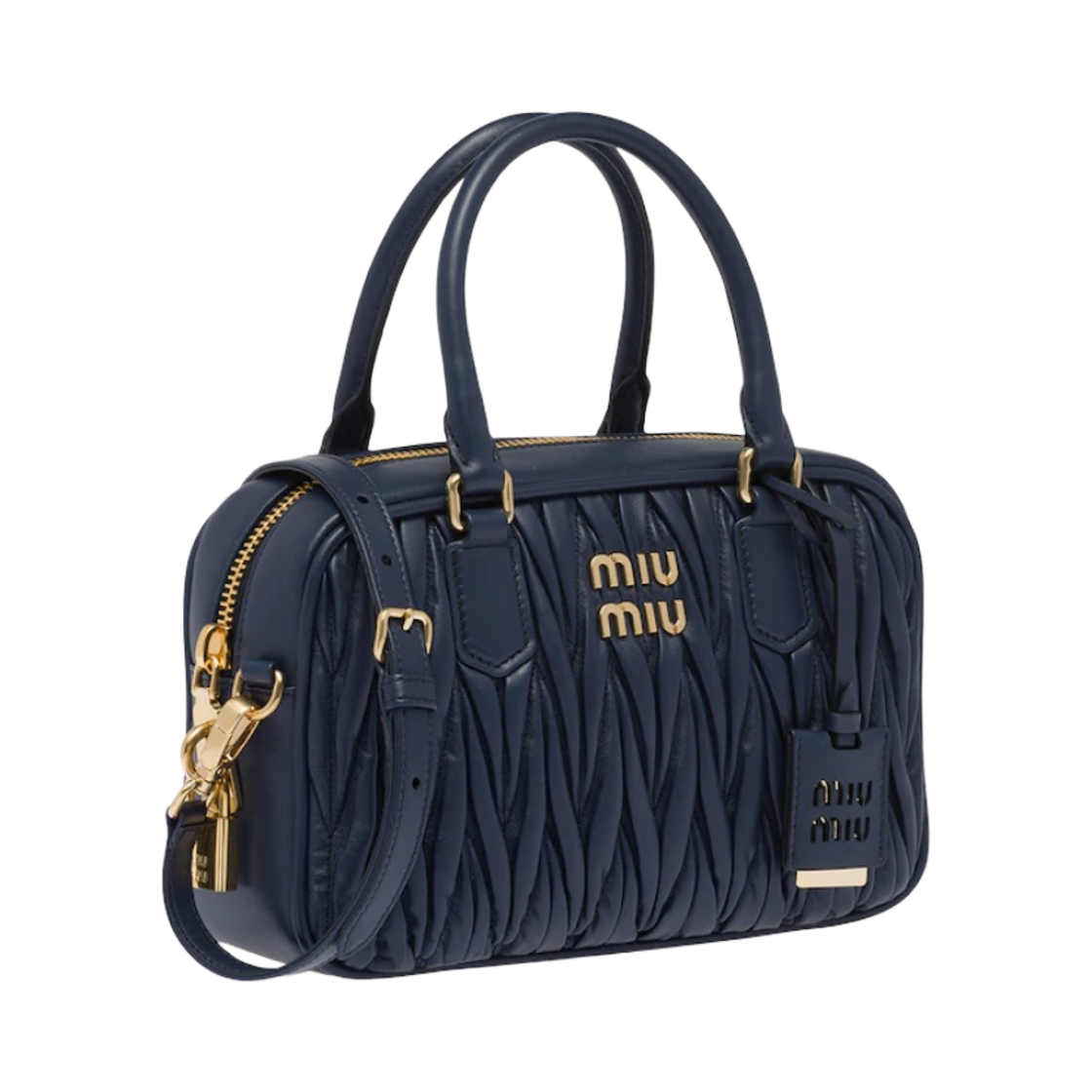Miu Miu Matelasse Nappa Leather Top Handle Bag Baltic Blue