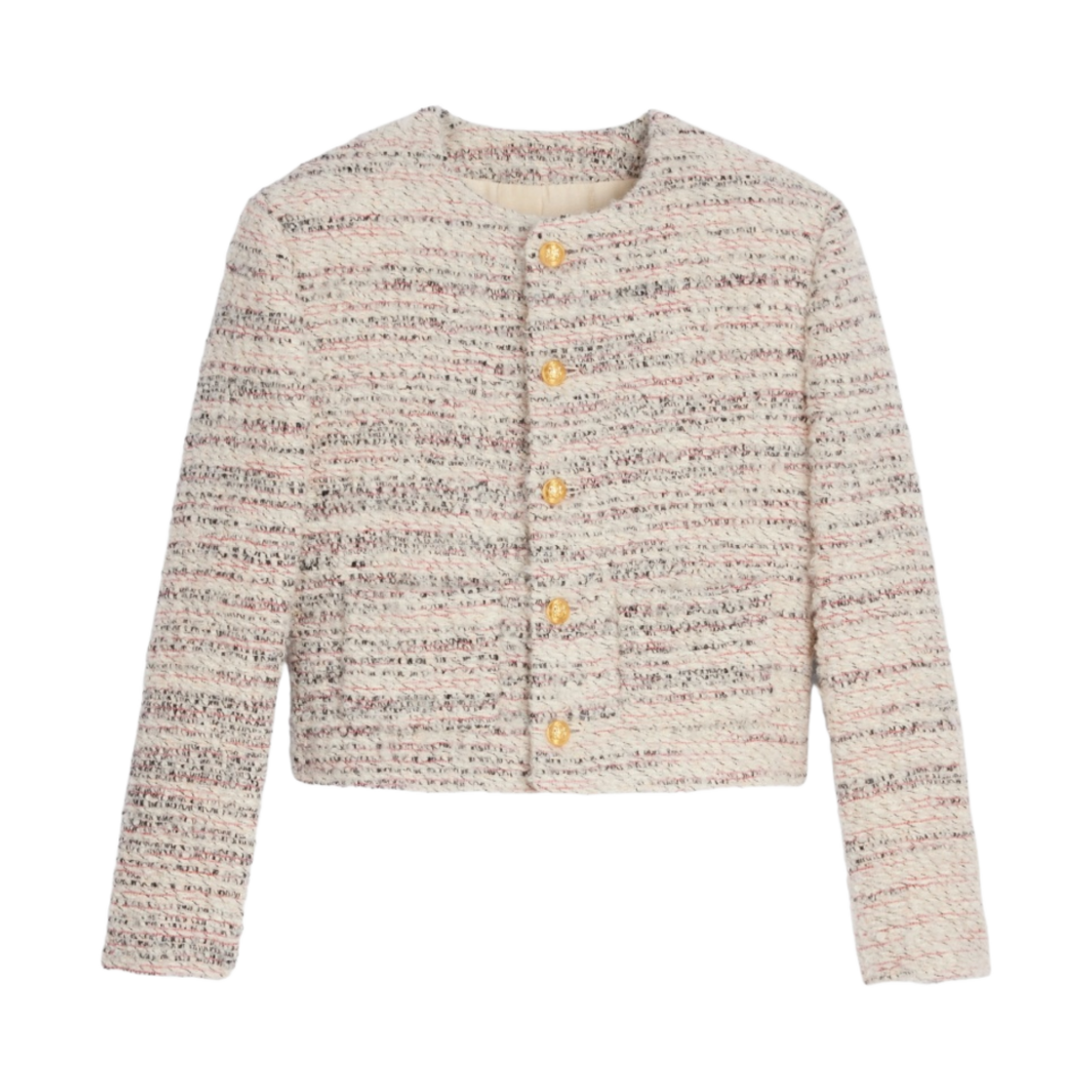 (W) Celine Chasseur Jacket in Artisanal Tweed Ecru Multicolor