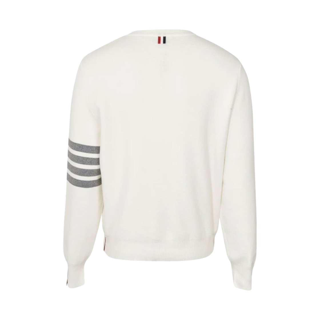 Thom Browne Milano Stitch 4-Bar Crewneck Pullover Knit White