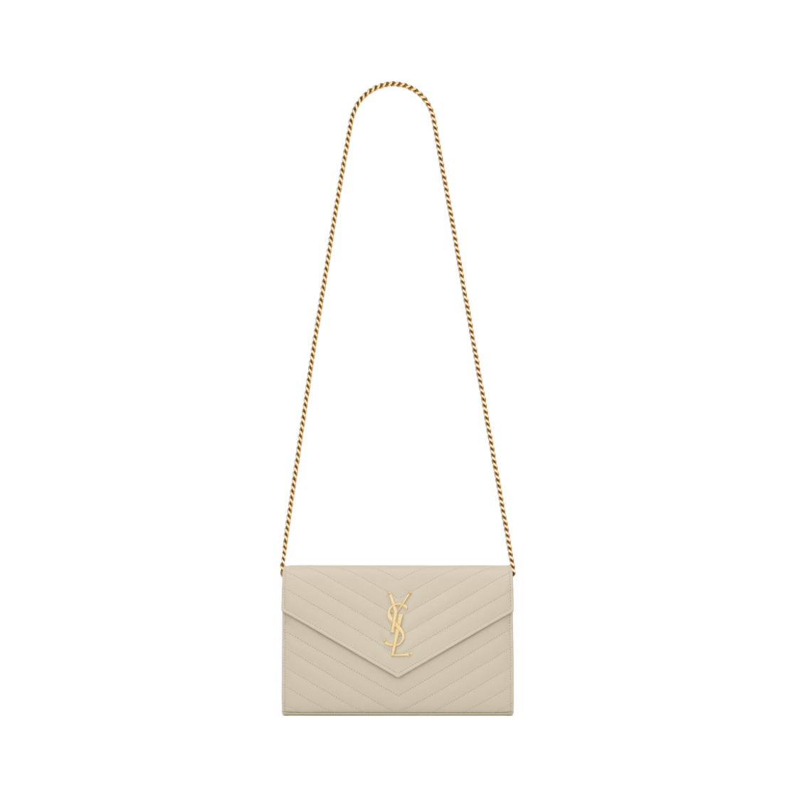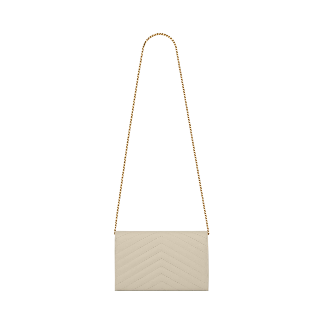 Saint Laurent Cassandre Matelasse Chain Wallet In Grain de Poudre Embossed Leather Blanc Vintage