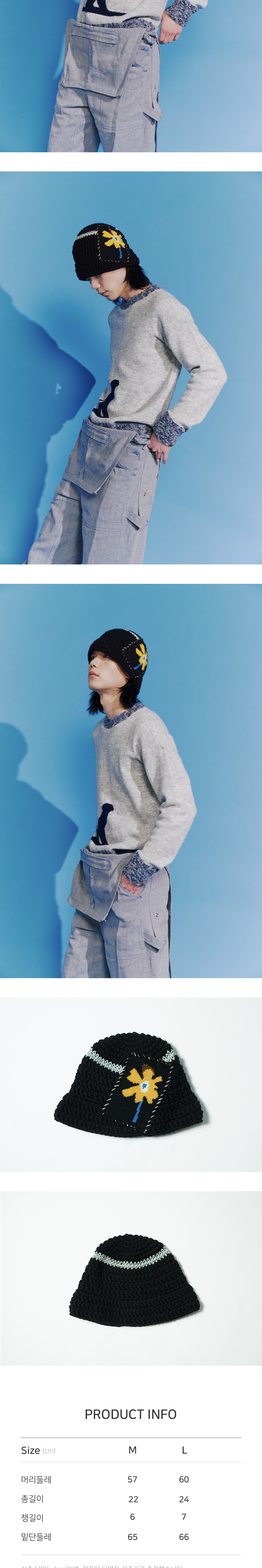 - 100% 핸드메이드입니다. - 미수아바흐브의 시그니처 버킷 햇입니다. - 니트 패치를 핸드 스티칭 한 디테일이 포인트입니다. - 헤드 톱 부분과 바디 부분의 배색이 특징입니다.