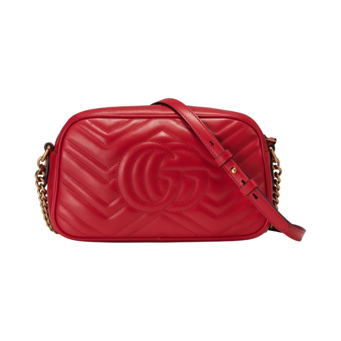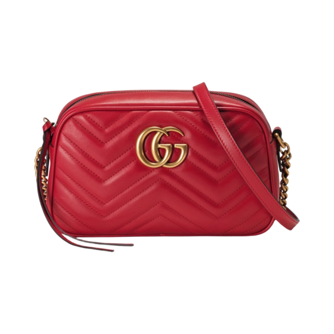 구찌 GG 마몽 마틀라세 스몰 체인 숄더백 히비스커스 레드