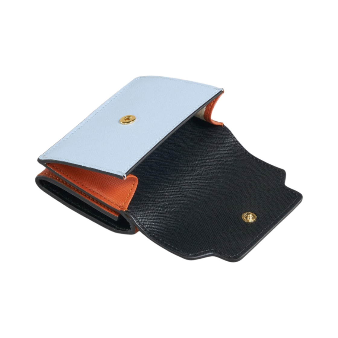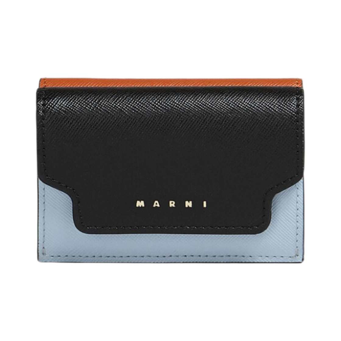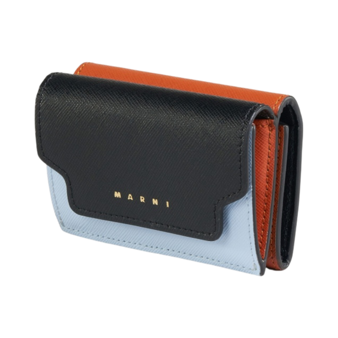 Marni Leather Tri-Fold Wallet Black Illision Blue Chili