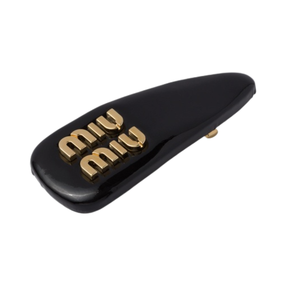 (W) 미우 미우 페이턴트 가죽 헤어 클립 블랙