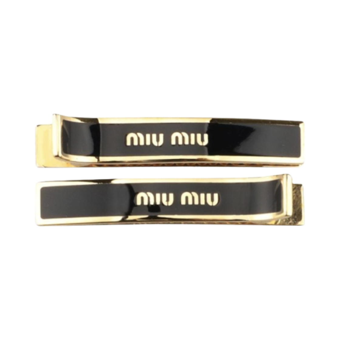 (W) 미우 미우 에나멜 메탈 헤어 클립 블랙