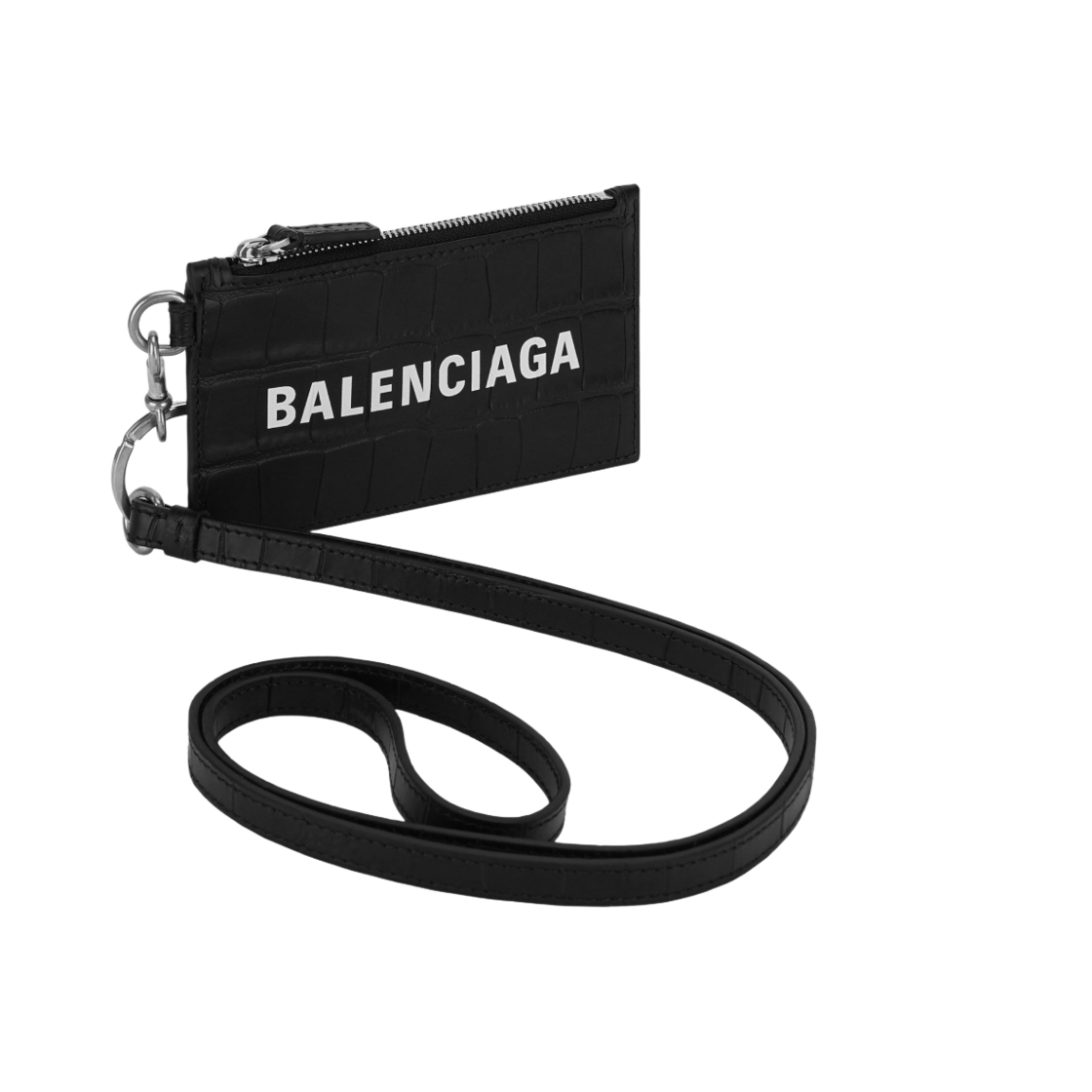 Balenciaga Crocodile Embossing Cash Card Case Keychain Black