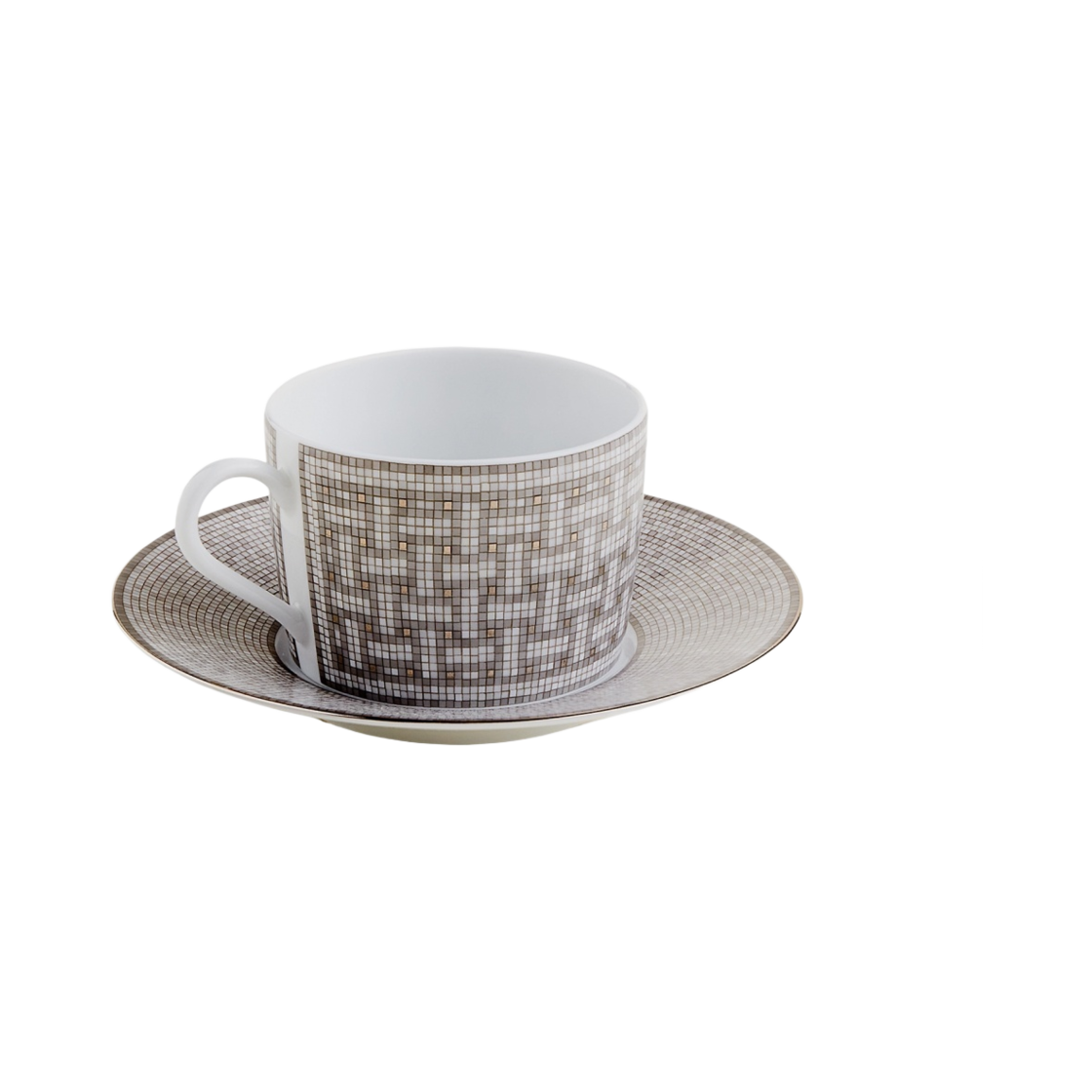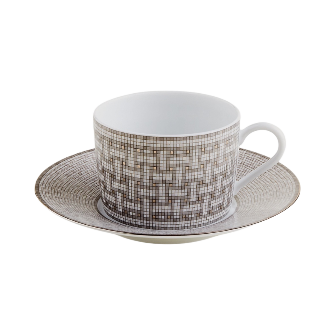 Hermes Mosaique Au 24 Tea Cup & Saucer Platinum (Set of 2)