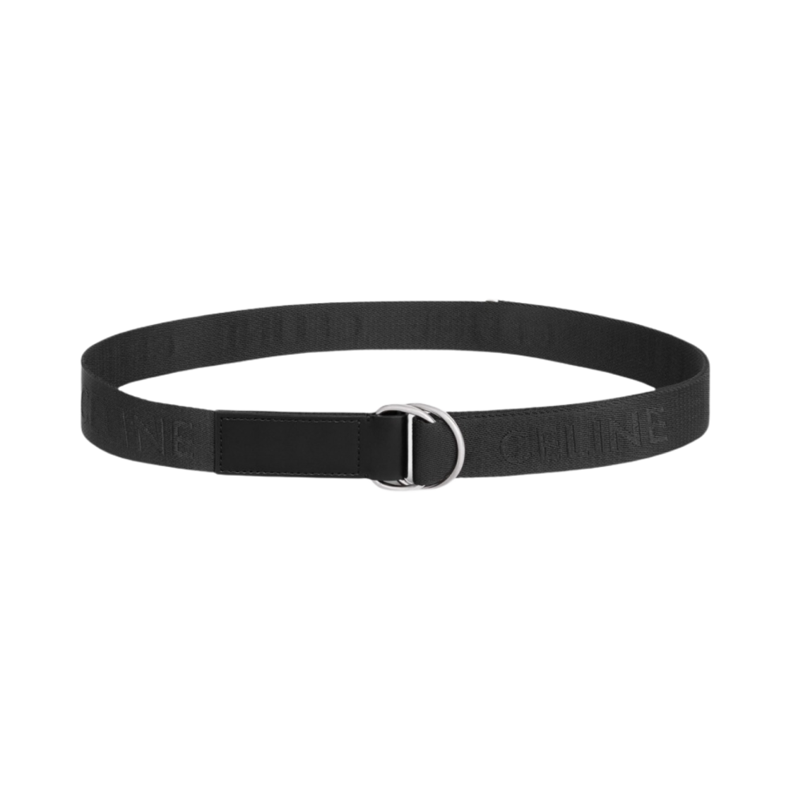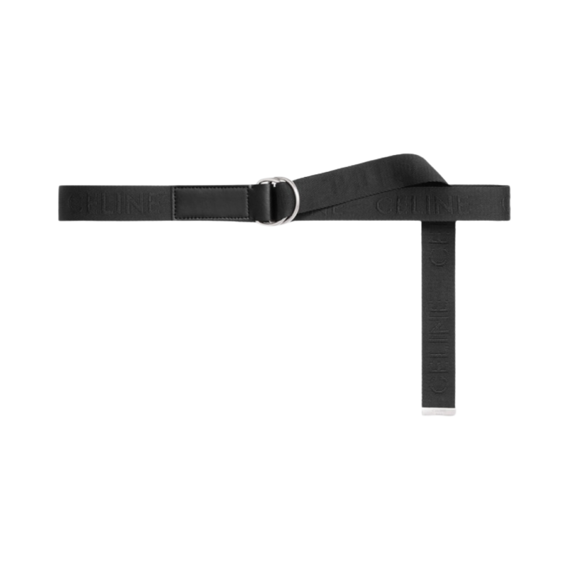 Celine Medium Double Ring Belt in Jacquard Textile and Calfskin Black