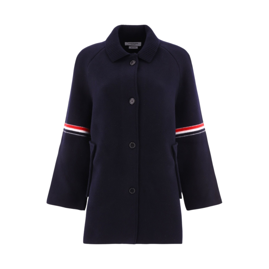(W) Thom Browne Milano Boiled Wool Cropped Armband Car Coat Navy