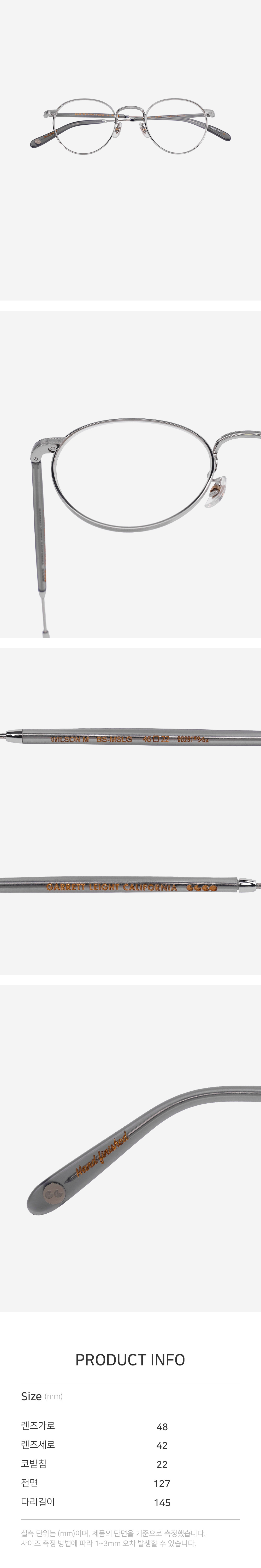 미국 캘리포니아 감성 아이웨어 브랜드, 가렛 라이트의 시그니쳐 모델 윌슨(WILSON). 음악의 전설 비틀즈의 존 레논에서 영감을 받은 제품입니다. 남녀노소 공용으로 데일리 착용에 적합합니다.