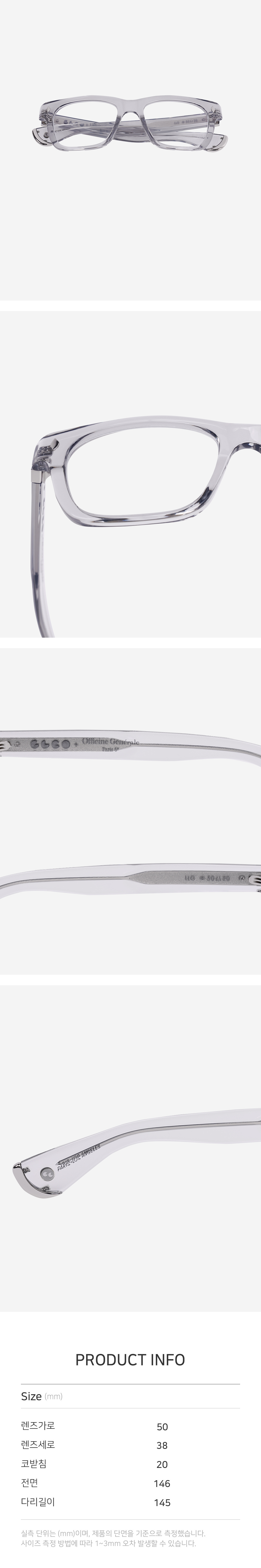 *안경테에 장착되어있는 렌즈는 프레임의 형태의 변형을 막기 위한 플라스틱 데모렌즈입니다.