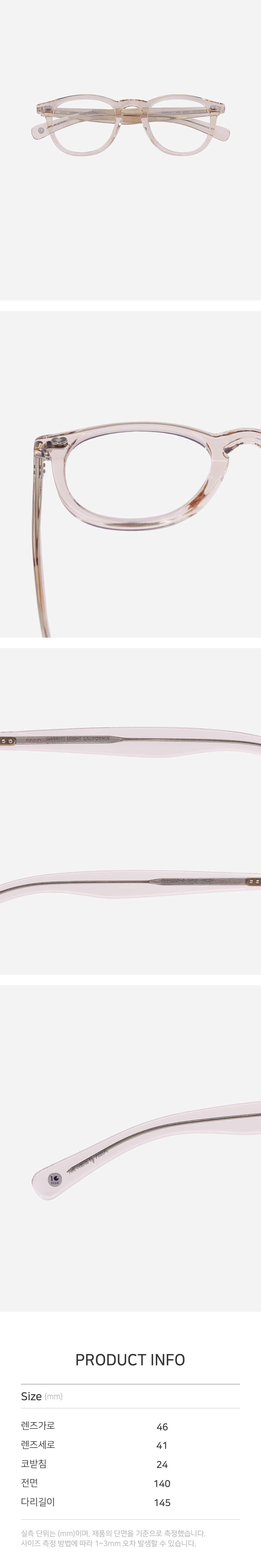 *안경테에 장착되어있는 렌즈는 프레임의 형태의 변형을 막기 위한 플라스틱 데모렌즈입니다.