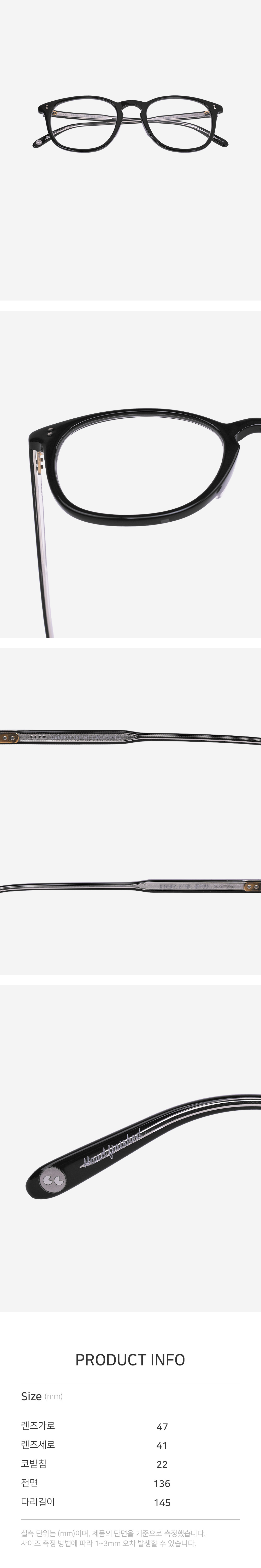 *안경테에 장착되어있는 렌즈는 프레임의 형태의 변형을 막기 위한 플라스틱 데모렌즈입니다.