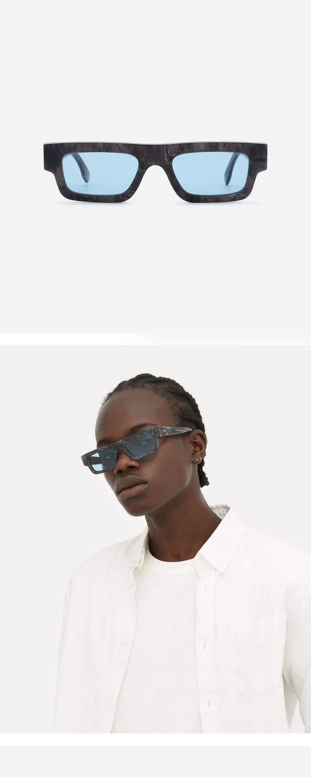 현대적인 아이코닉 실루엣에 2022 SS 컬렉션 제품으로 1960년대의 청키한 스타일의 프레임이 특징인 선글라스입니다.