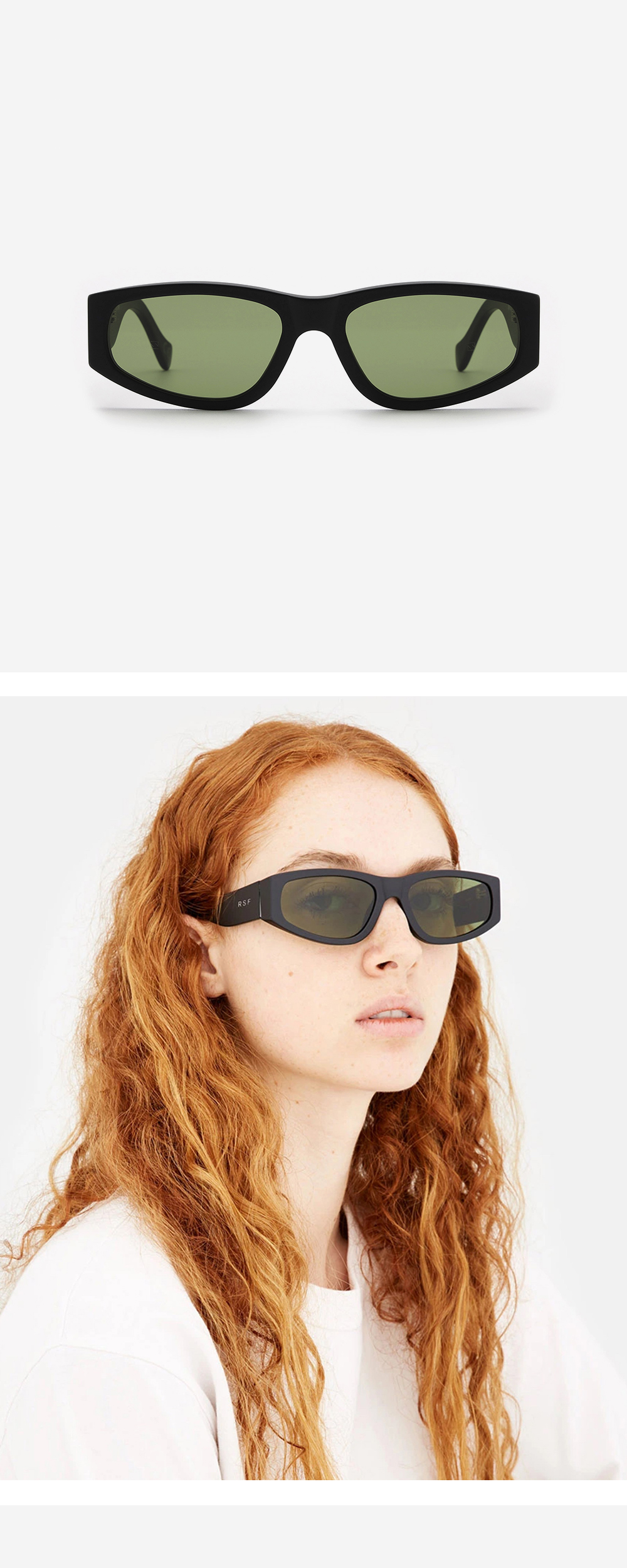 RSF 고유의 다이나믹한 느낌을 표현한 시그니처 라인으로 레트로슈퍼퓨처만의 미학적인 디테일을 잘 살린 선글라스입니다.