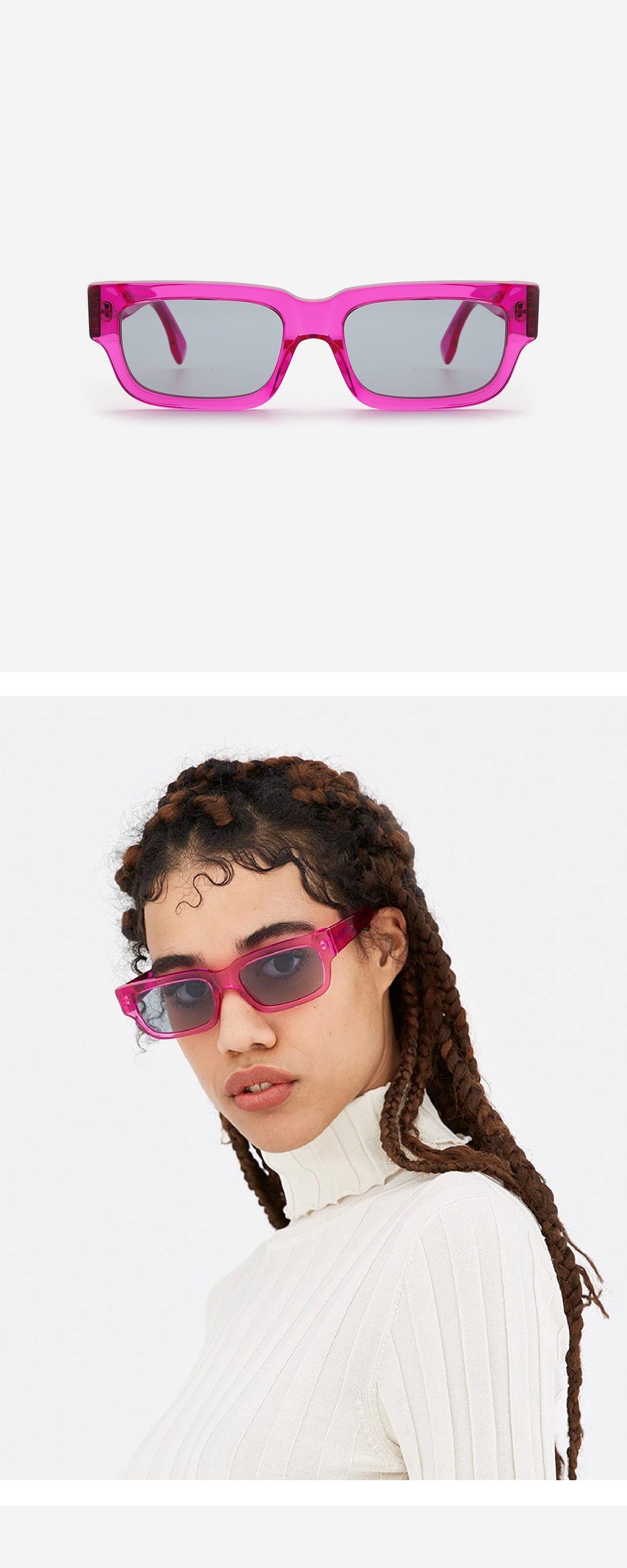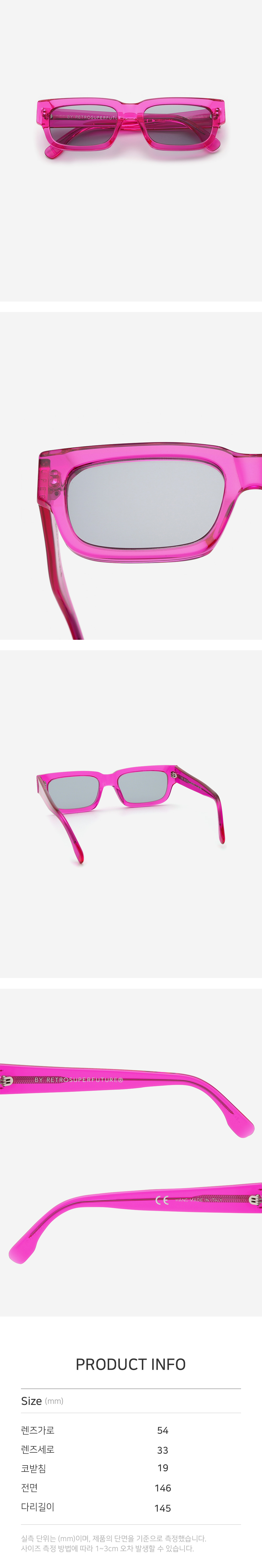 *안경테에 장착되어있는 렌즈는 프레임의 형태의 변형을 막기 위한 플라스틱 데모렌즈입니다. 데모렌즈의 미세한 스크래치는 불량사유가 될 수 없습니다.