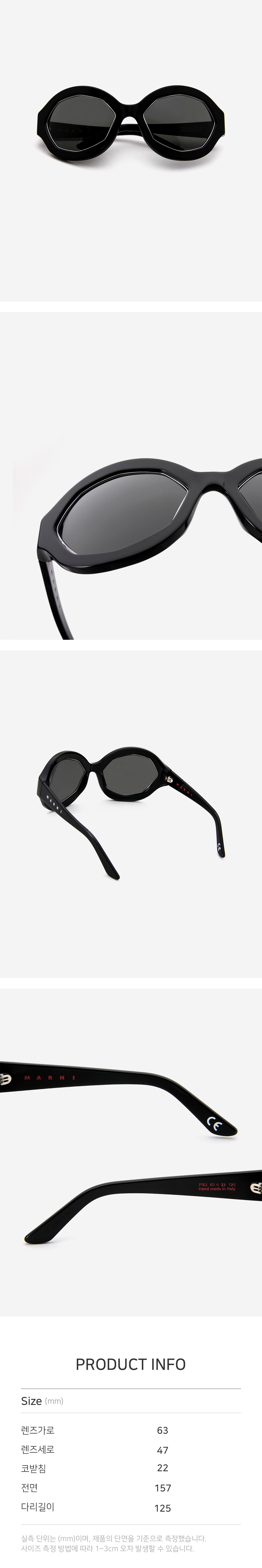 *안경테에 장착되어있는 렌즈는 프레임의 형태의 변형을 막기 위한 플라스틱 데모렌즈입니다. 데모렌즈의 미세한 스크래치는 불량사유가 될 수 없습니다.
