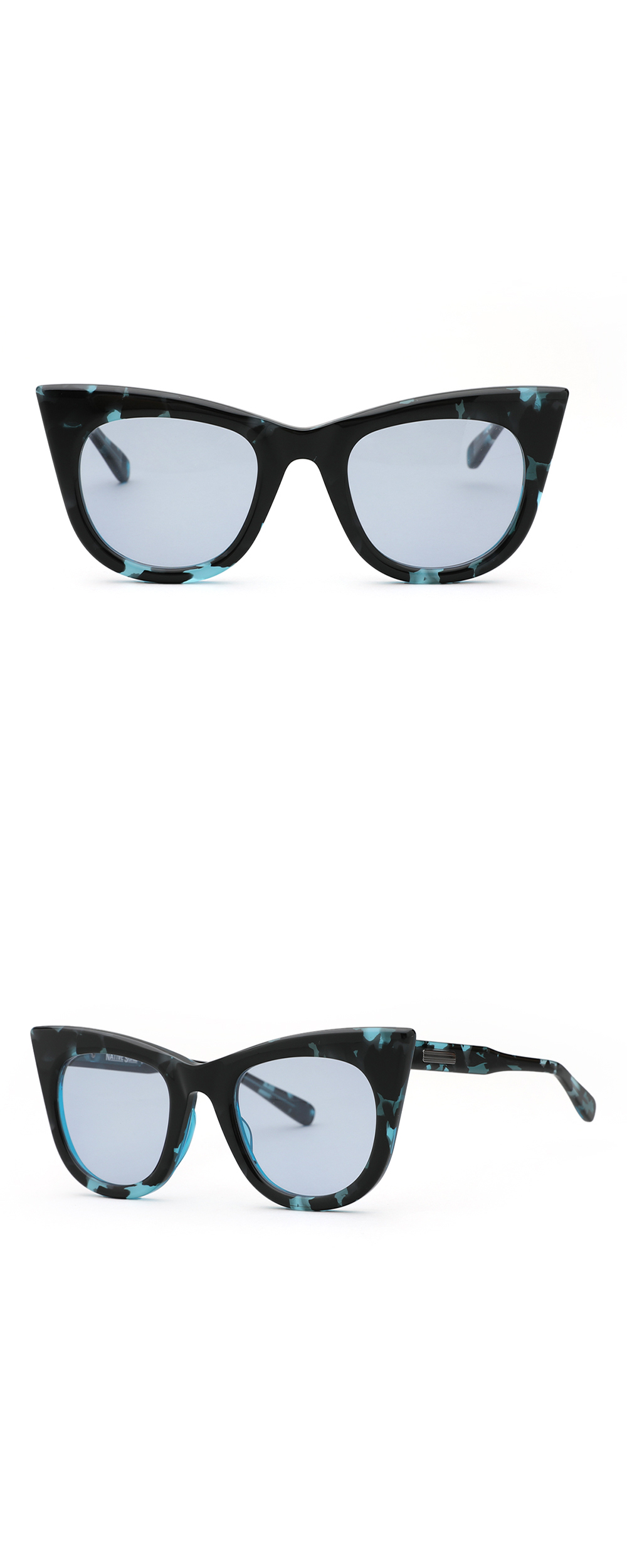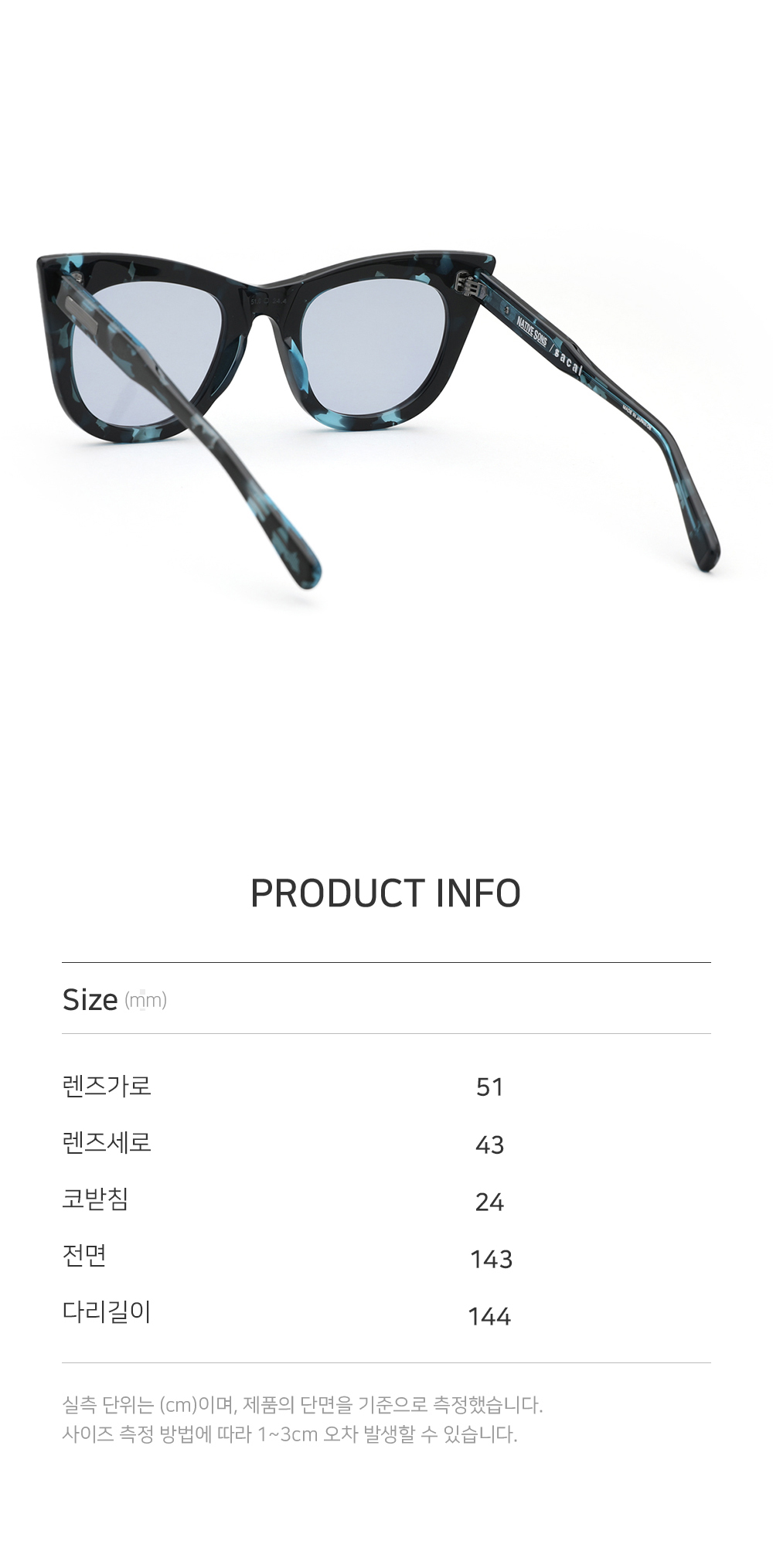 *안경테에 장착되어있는 렌즈는 프레임의 형태의 변형을 막기 위한 플라스틱 데모렌즈입니다. 데모렌즈의 미세한 스크래치는 불량사유가 될 수 없습니다.