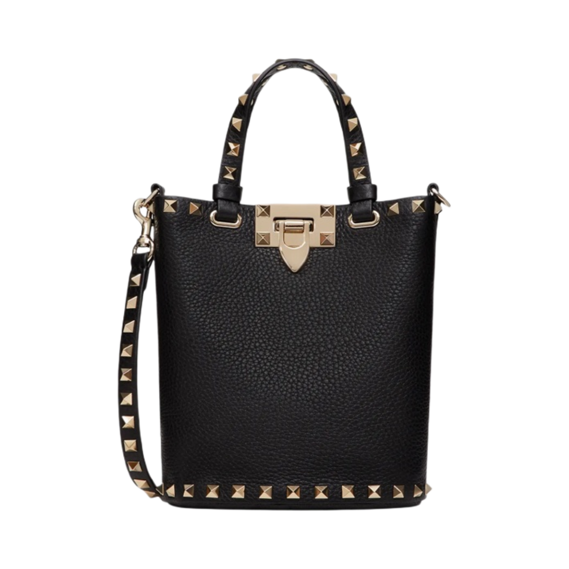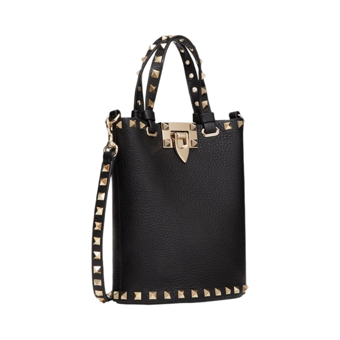 발렌티노 락스터드 크로스바디 파우치 그레이니 카프스킨 블랙