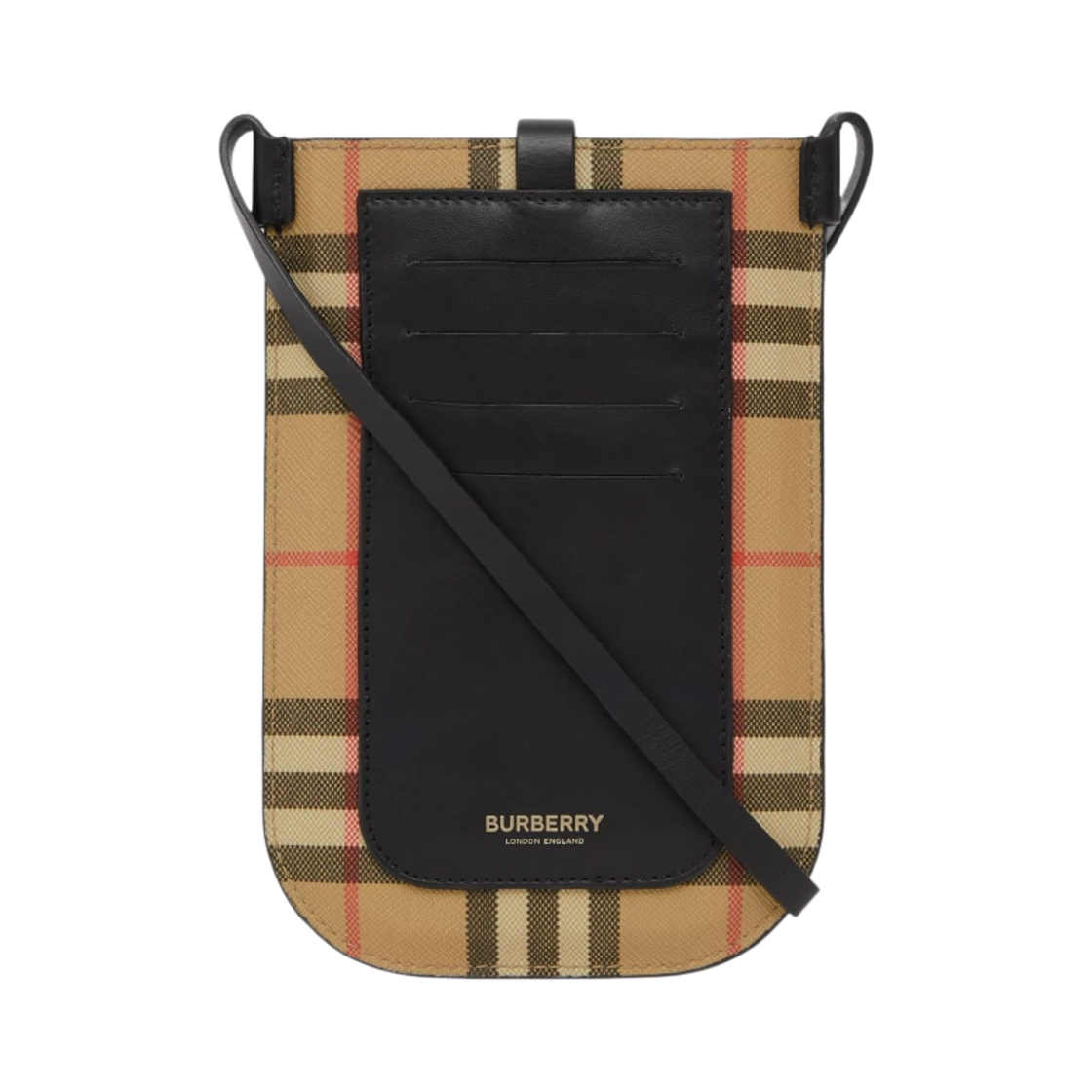 버버리 빈티지 체크 앤 폰 케이스 스트랩 아카이브 베이지 블랙