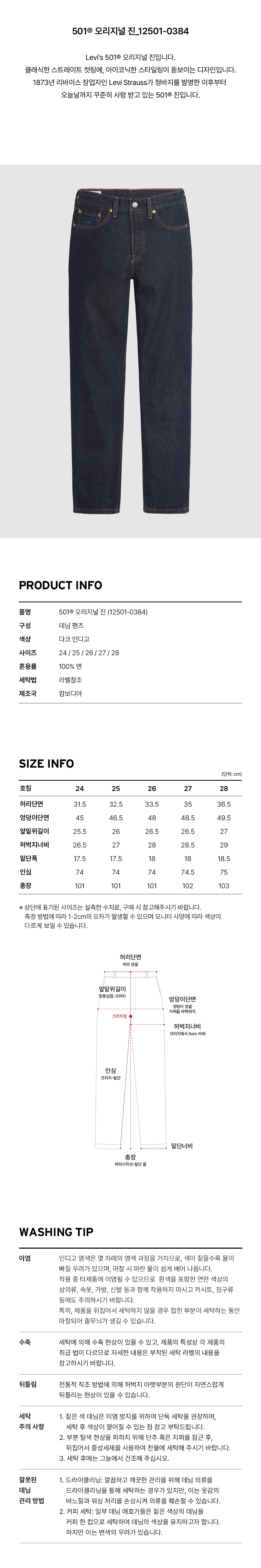 리바이스 우먼 501 오리지널 핏 진 다크 인디고