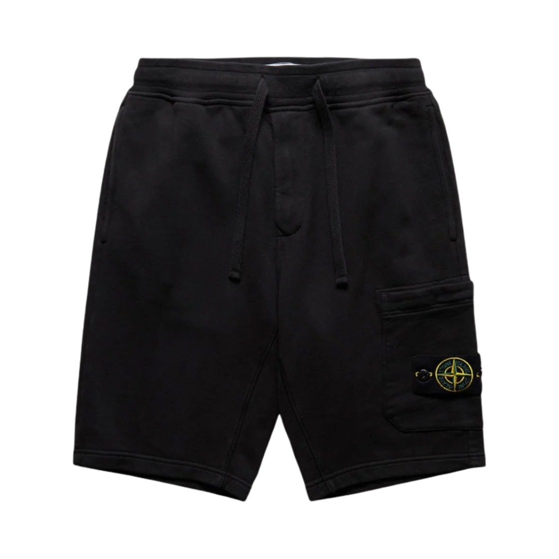 Stone Island 64620 Brushed Cotton Fleece Bermuda Cargo Shorts Black - 22FW
