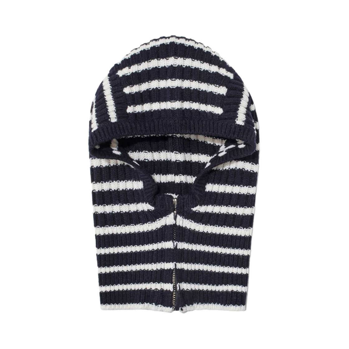 (W) Open Yy Stripe Zip Up Balaclava Navy