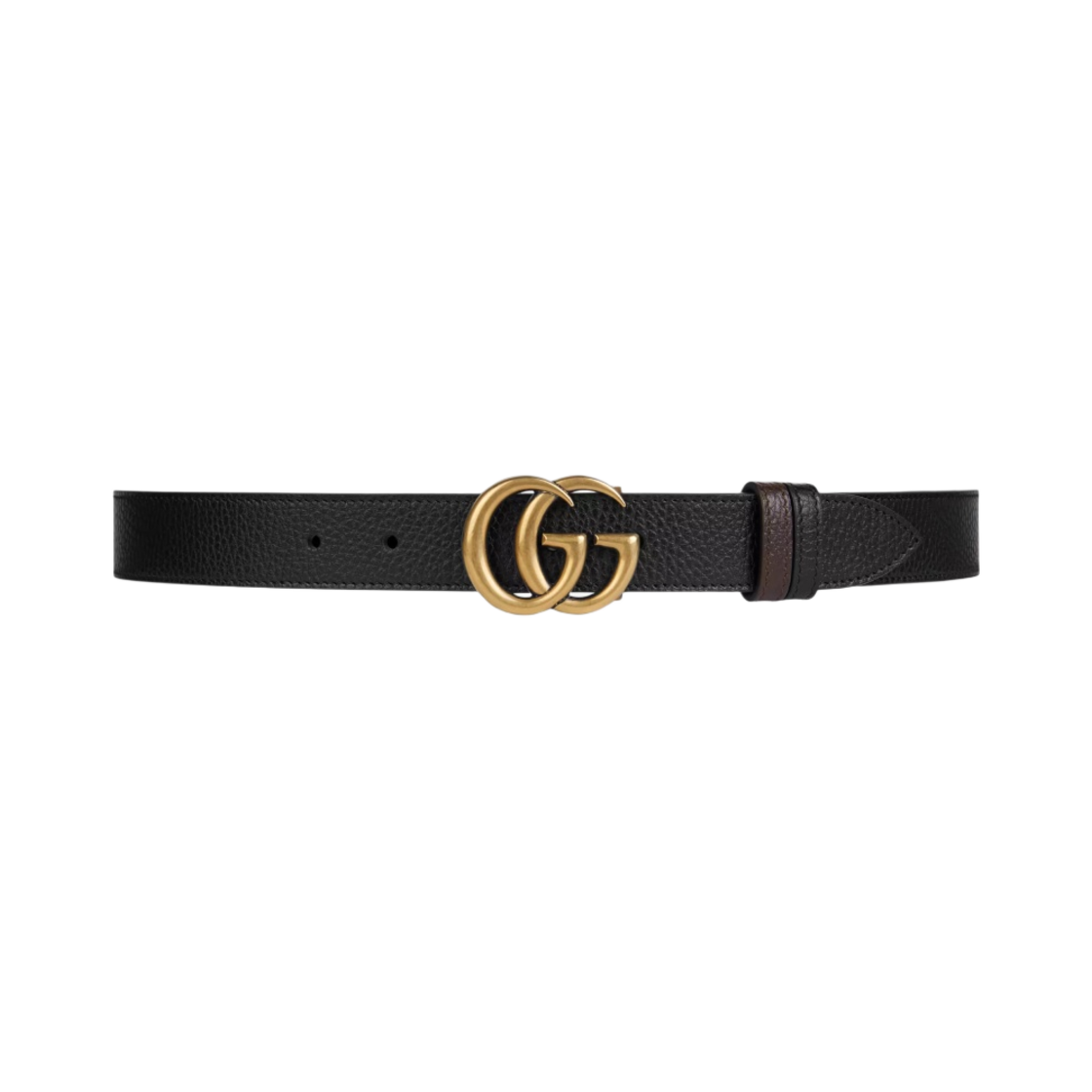 Gucci Reversible Thin Belt with Double G Buckle Black Brown