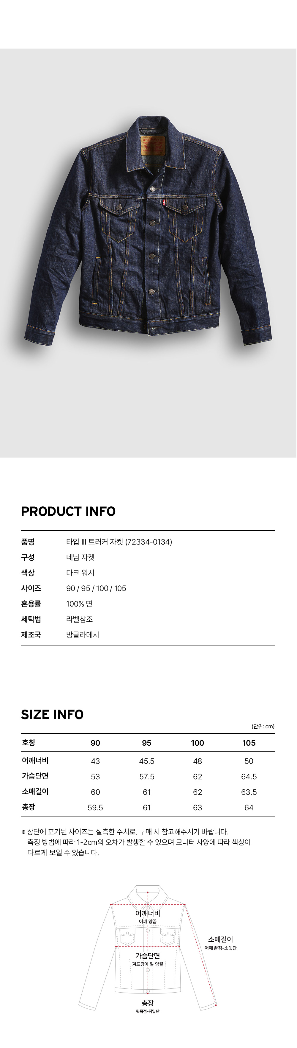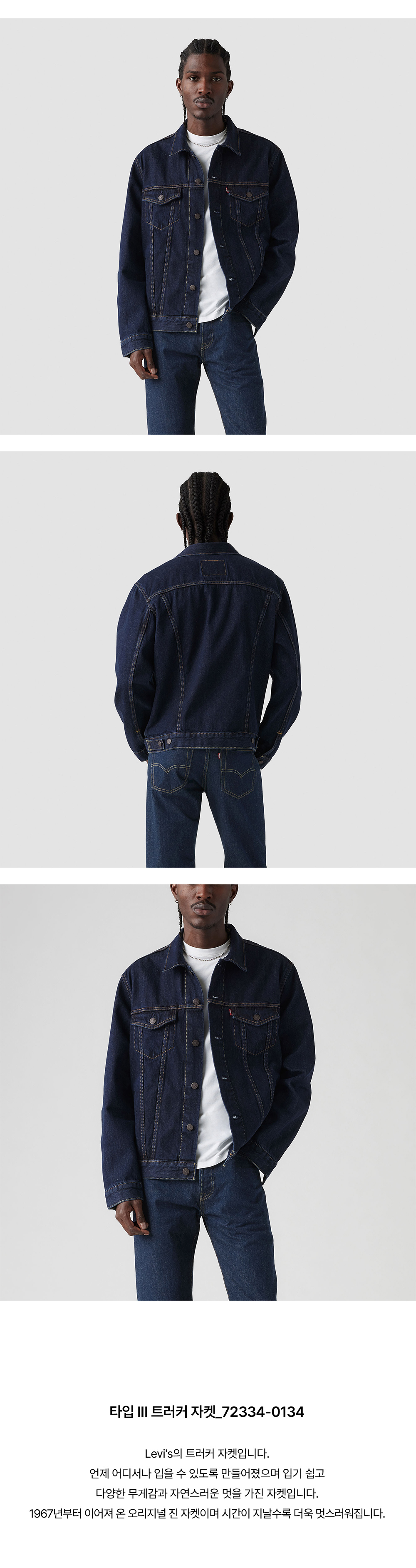Levi's의 트러커 자켓입니다. 데일리로 착용할 수 있도록 제작되었으며 베이직한 아이템으로 시즌 제한없이 오랫동안 착용이 가능합니다. 다양한 스타일링이 가능한 데님자켓입니다.