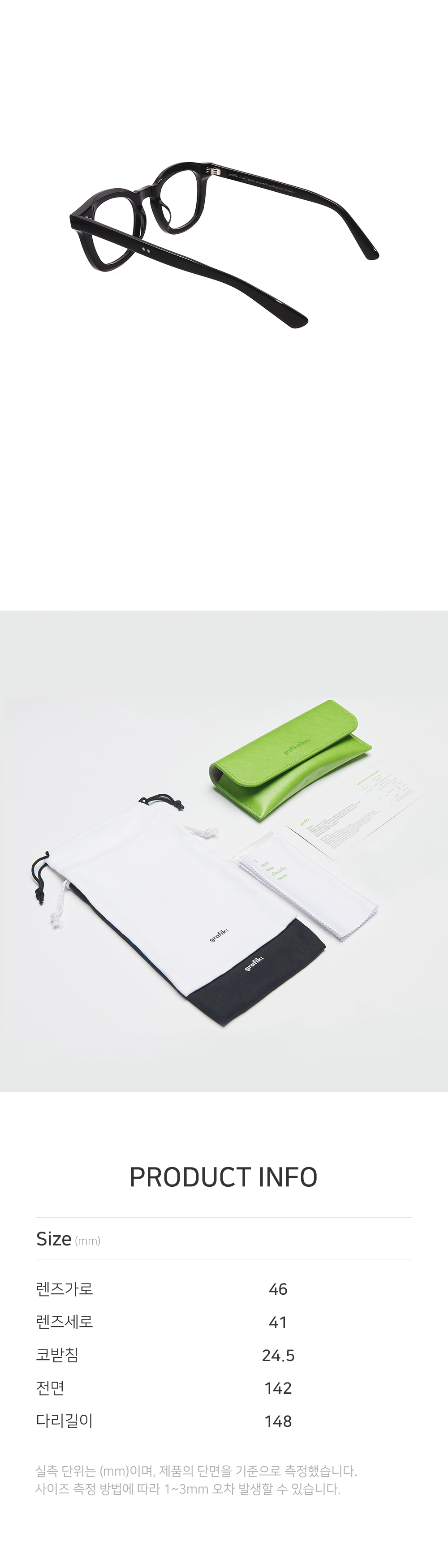 *안경테에 장착되어있는 렌즈는 프레임의 형태의 변형을 막기 위한 플라스틱 데모렌즈입니다.
