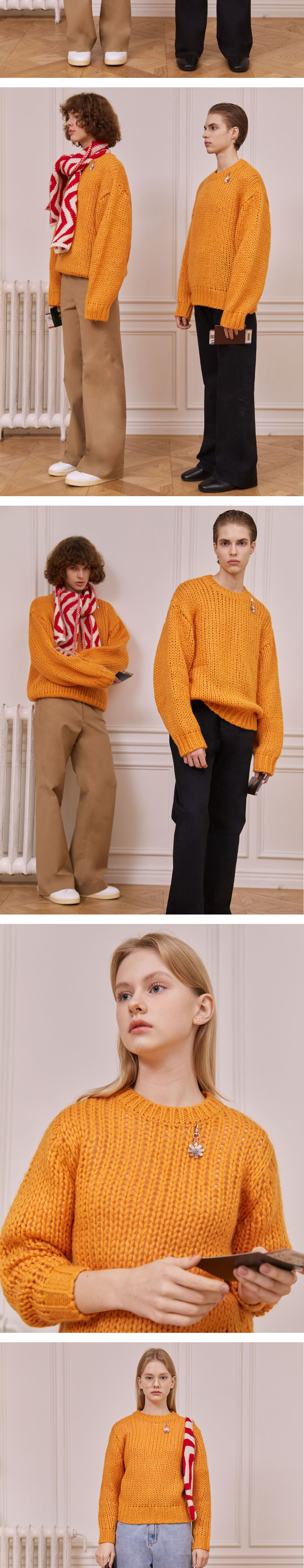 [KREAM 단독] 에스티유 케이블 스웨터 오렌지