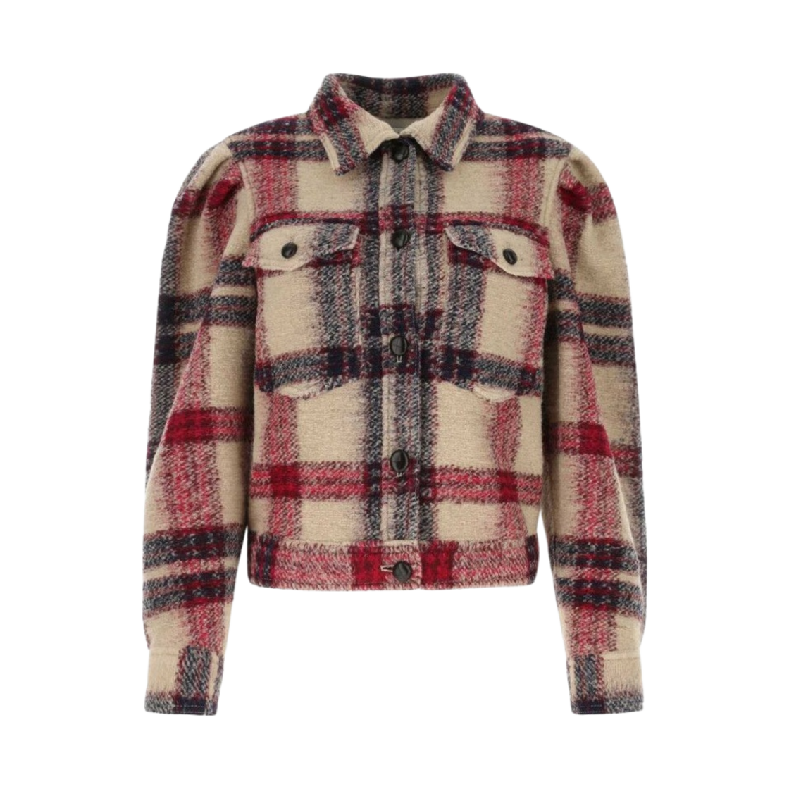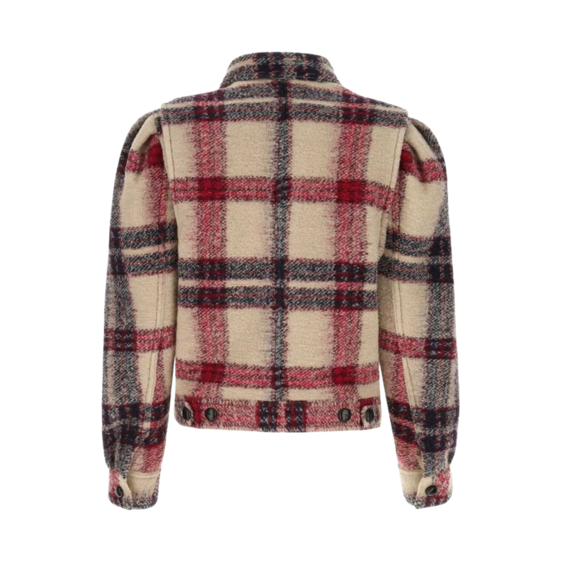 (W) Isabel Marant Leiko Checked Coat Burgundy Ecru - 22FW