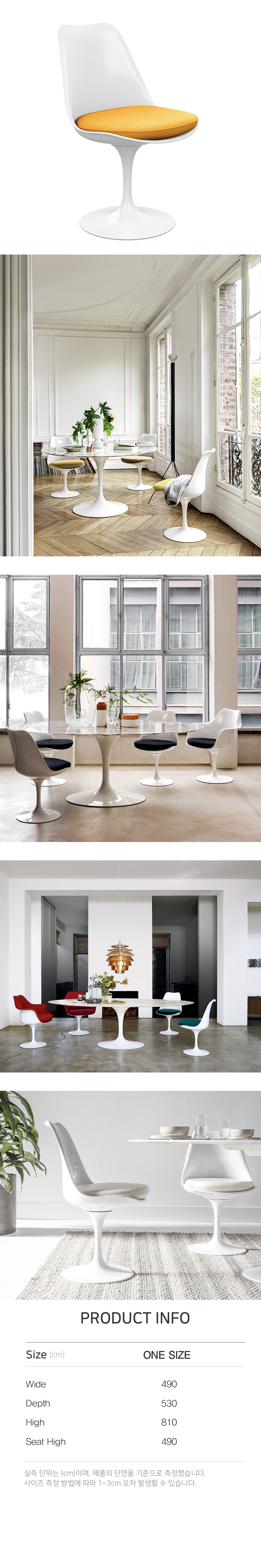 Eero Saarinen이 디자인한 Tulip Chair는 튤립 모양의 형태가 특징적입니다. 하나의 기둥으로 지지되는 다리 형태가 우아하면서도 심플한 곡선 라인으로 디자인 되었습니다. 울로 짜여진 패브릭 시트가 조화롭게 이루어집니다. Tulip Dining Table과 함께 세트 구성으로 스타일있는 공간을 완성할 수 있습니다