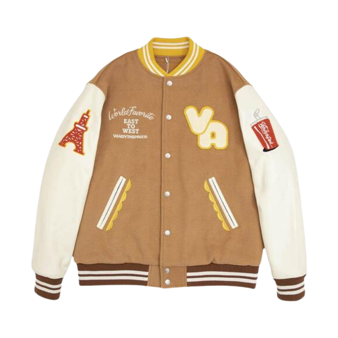 Vandy The Pink Charr Burger Varsity Jacket Mustard Brown
