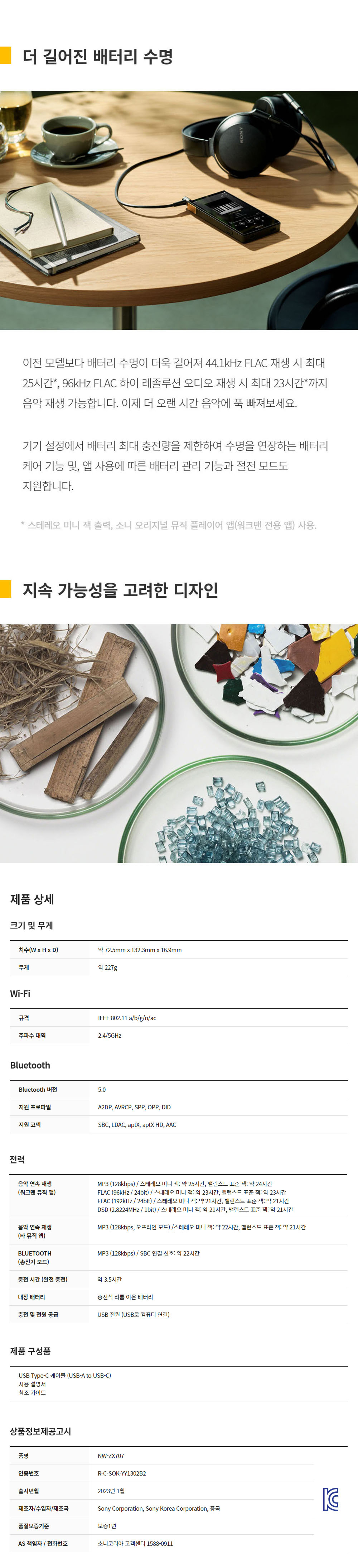 소니 NW-ZX707 블랙 (소니 코리아 정식 발매 제품)