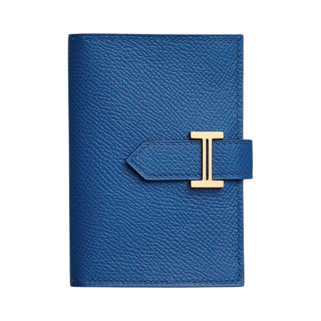 Hermes Bearn Card Holder Epsom & Gold Bleu France