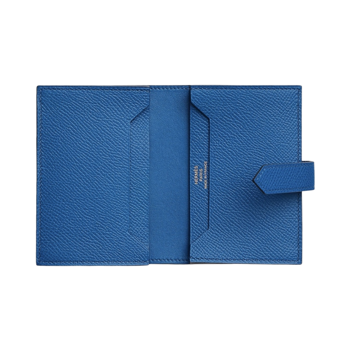 에르메스 베안 카드 홀더 앱송 & 골드 하드웨어 블루 프랑스